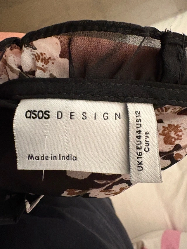 ASOS Curve Black Floral Long Sleeve V-Neck Dress