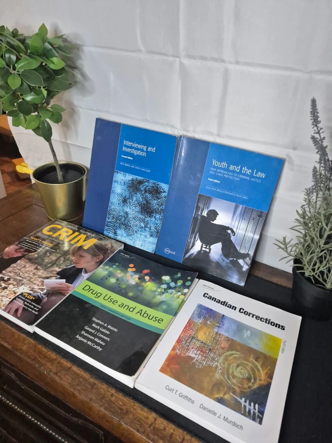 This is a bundle of five Canadian textbooks covering criminology topics. It includes 'Interviewing and Investigation', 'Youth and the Law', 'Drug Use and Abuse', 'Crim' and 'Canadian Corrections'. These books are great for students studying criminal justice or related fields.