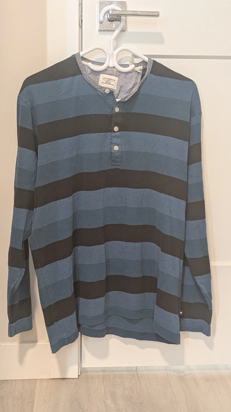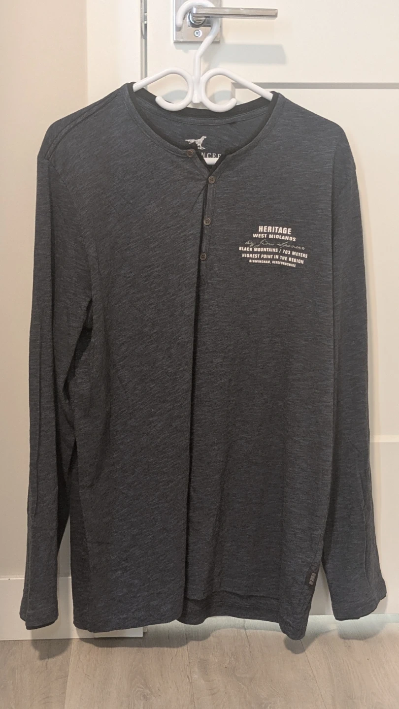 These are men's long sleeve Henley shirts from Lucky Brand and Heritage Midlands. Material is a soft cotton blend.