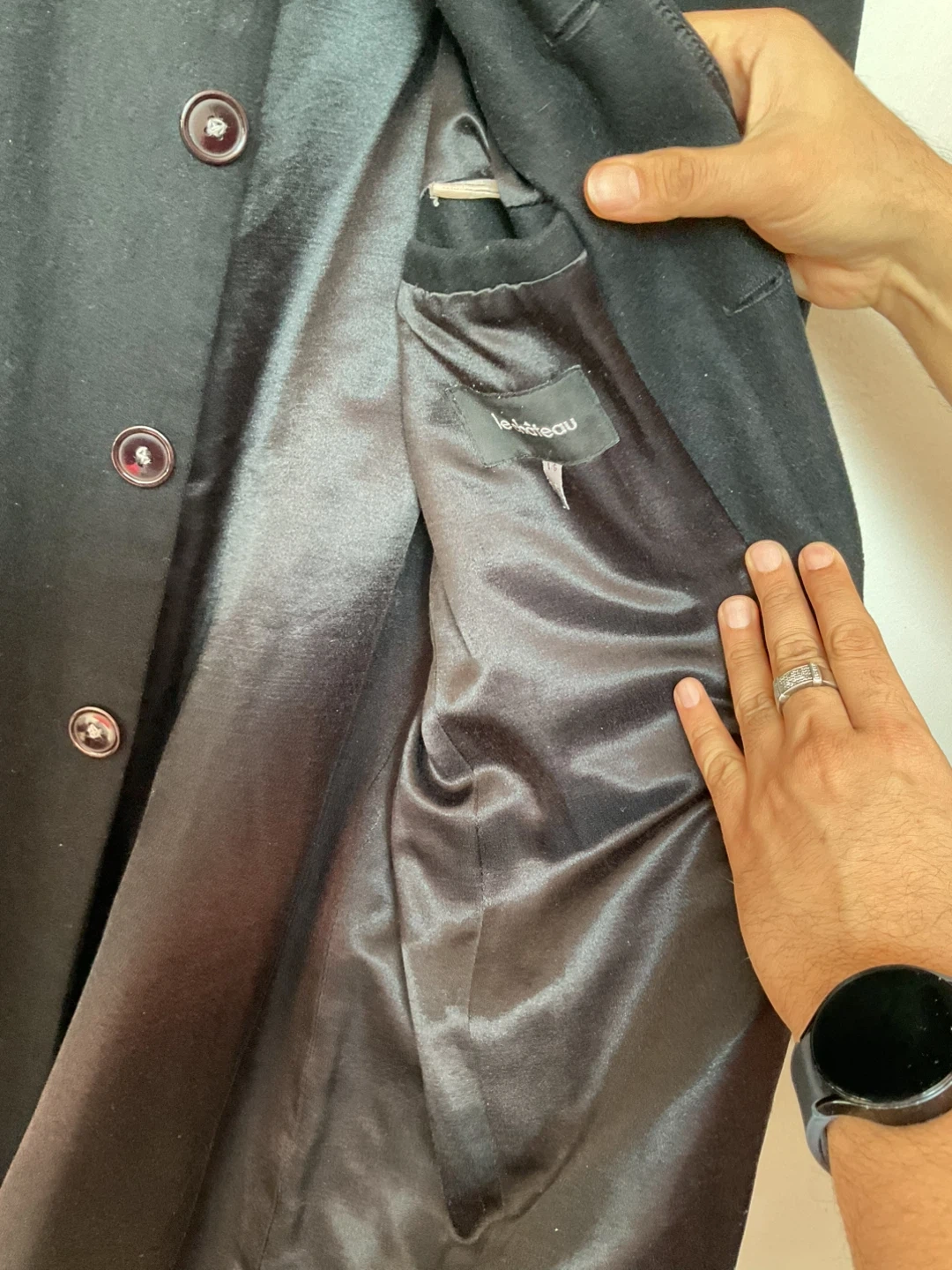 Le Chateau black wool blend coat, Made in Canada. It's fully lined with a satin-like material. This classic coat is great for cooler weather.