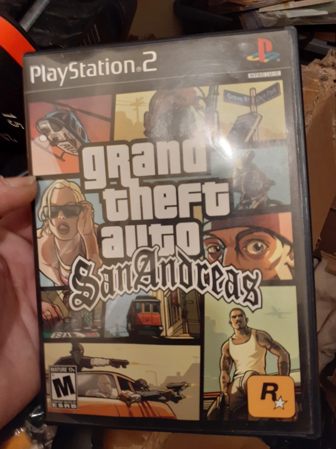 This is Grand Theft Auto San Andreas for the PlayStation 2. It includes the game disc and the 'Local Business Advertiser's Guide'. The game is rated M for Mature. No scratches all manuals and posters are included