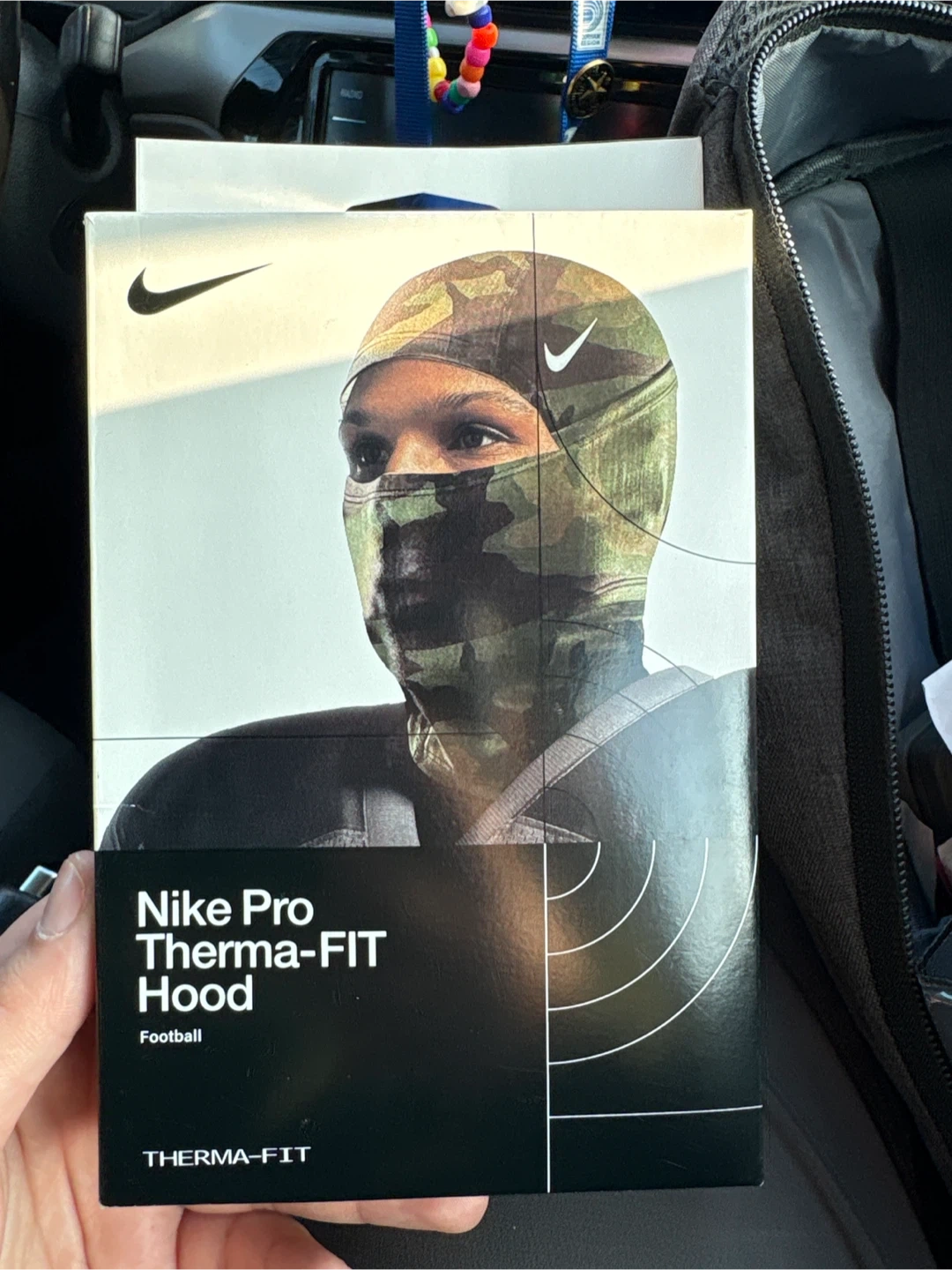 Stay warm with Nike Therma-FIT technology in this camouflage print hood. Flat seams ensure comfort against your skin. It's designed to be worn on its own or under a helmet. Made with 88% polyester and 12% spandex.