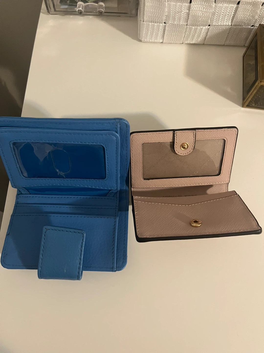 Selling two card holders! One is a light pink Michael Kors card holder, and the other is a blue genuine leather card holder. Both are in great condition and perfect for carrying your essential cards