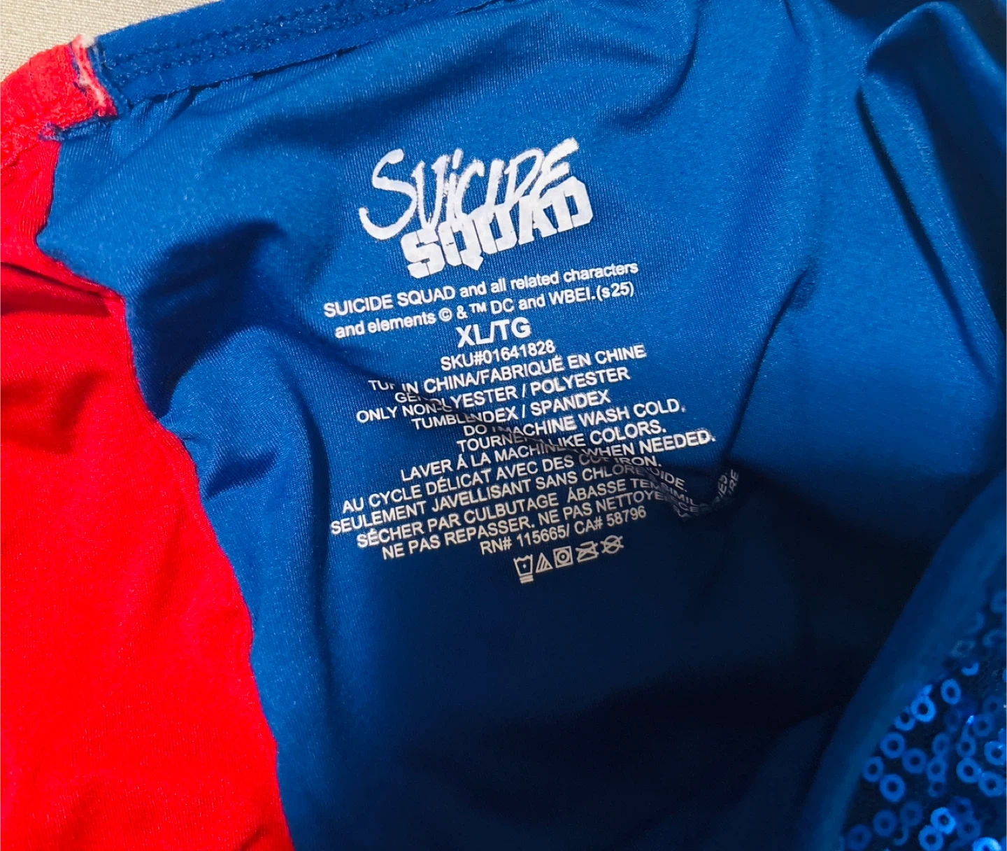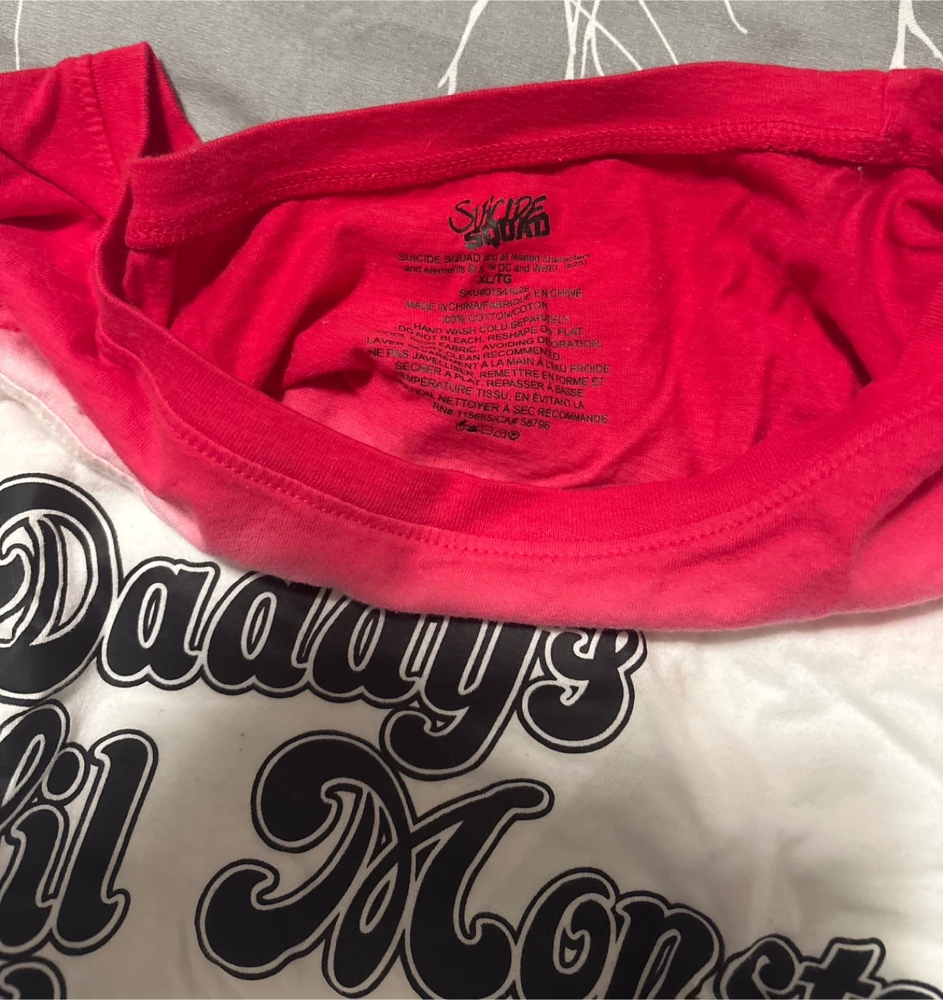 Selling a Suicide Squad Harley Quinn themed set! The shorts are XL/TG and feature a fun sequin design. The shirt is also XL/TG and made of 100% cotton. Perfect for any fan!