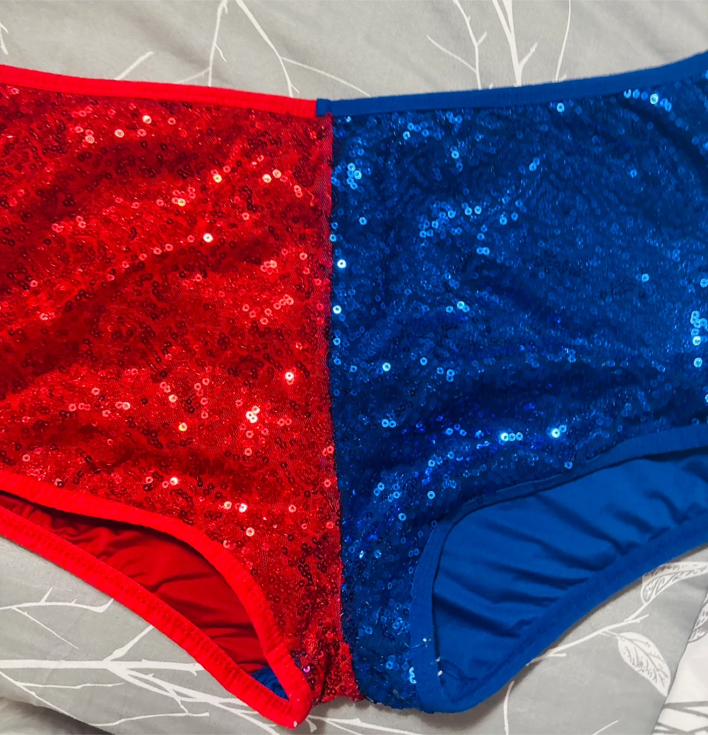 Selling a Suicide Squad Harley Quinn themed set! The shorts are XL/TG and feature a fun sequin design. The shirt is also XL/TG and made of 100% cotton. Perfect for any fan!