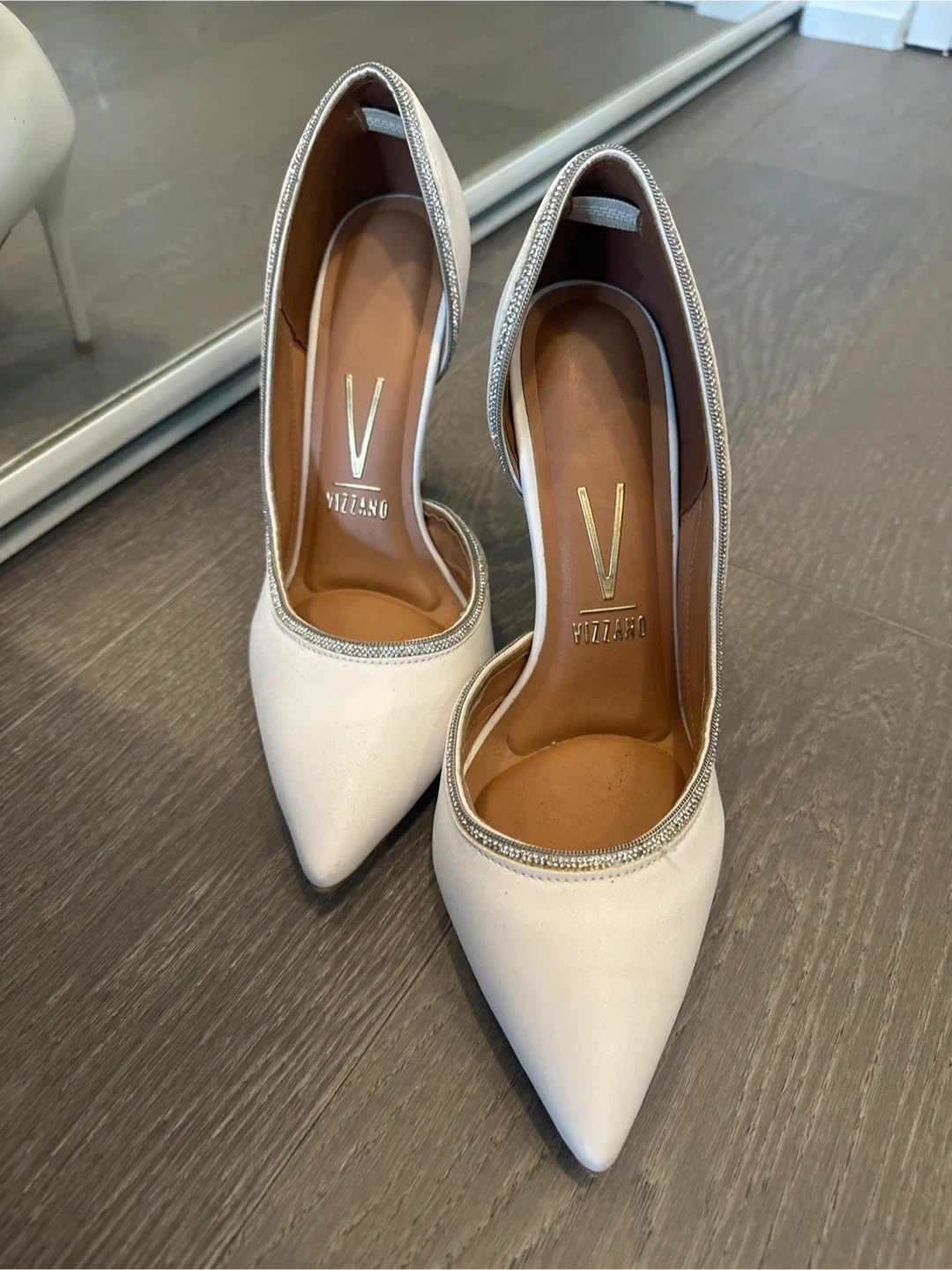 Buy & SellWhite HeelsWhite Heels$48Selling a pair of white Vizzano heels. They have some signs of wear, as shown in the photos.ConditionLike newSize7.5BrandVizzanoWHERE TO MEETCheck LocationView MapSELLERCintiaMississauga Valleys100 reviews0 chats·1 favorites·67 viewsSEND CHAT TO SELLERHi Cintia! I’m interested in your listing.Hi Cintia! I’m interested in your listing.Get the Karrot app to chatSign In to chat