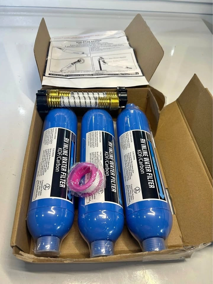 New water filter, 3 pack. NSF Certified RV Inline Marine Water Filter. Reduces Chlorine, Bad Taste, Odor. Fluoride Removal. Easy Installation. Great for RVs, Camping, Gardening, and Pets. Asking $65. Pick up near Bloor and Dixie in Mississauga.
