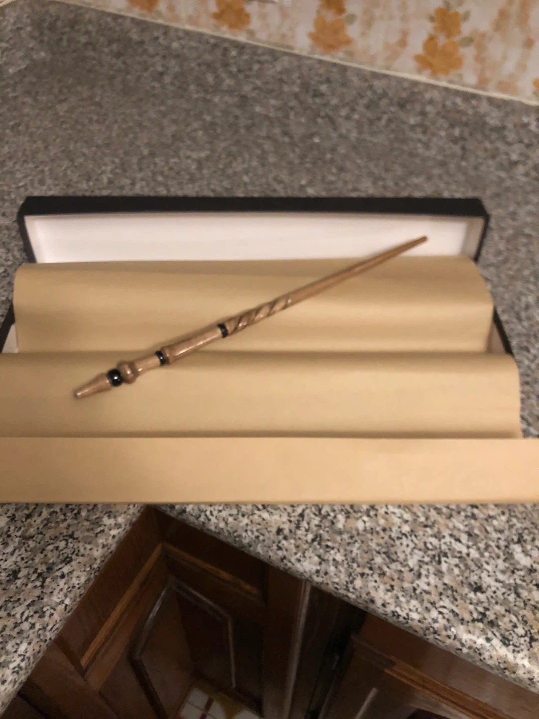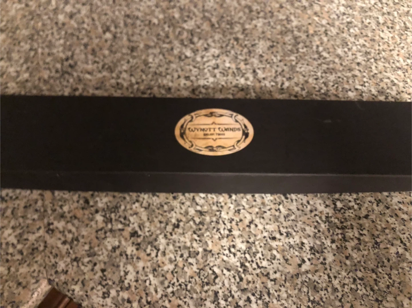 This is a replica wand from Wyvern Wands, inspired by Harry Potter. It's made of wood and comes in its original box. This wand would be great for any Harry Potter fan!