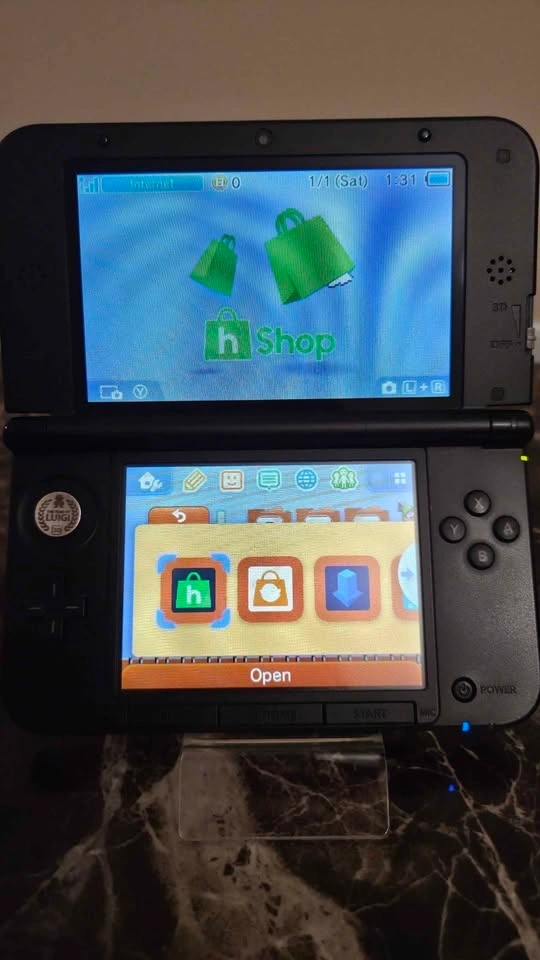 Very good condition 3DS XL console modded / jailbroken with hShop app (can download and install any game directly on the console for free), charger, stylus, 32gb high speed SD card with top game series & apps pre-installed.