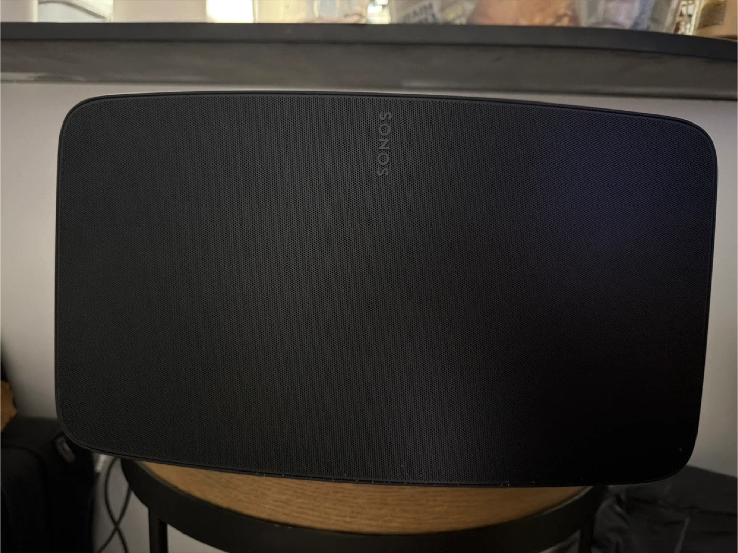 This is a black Sonos Five wireless speaker.
