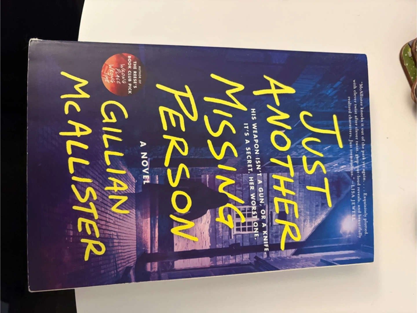 This is Gillian McAllister's novel, 'Just Another Missing Person'. It's a Reese's Book Club Pick. This mystery thriller features a secret and clever twists.