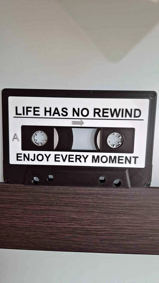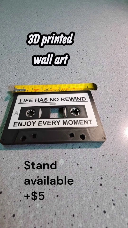 All our 3D prints are cash only. Pick up in Pinnacle West. It can be personalized, great for wedding or anniversary presents! Let's make your mix tape! For example: Lisa & Mike, December 25, 2025. Starts at $5+. 3D printed tape cassette wall art. "Life has no rewind. Enjoy every moment." 8 inches by 5 inches. Buyer can use command strips to put on wall. 3D printed stand also available for $5+. Thank you for shopping local! Enigma 3D printing services. File paid on Patreon.
