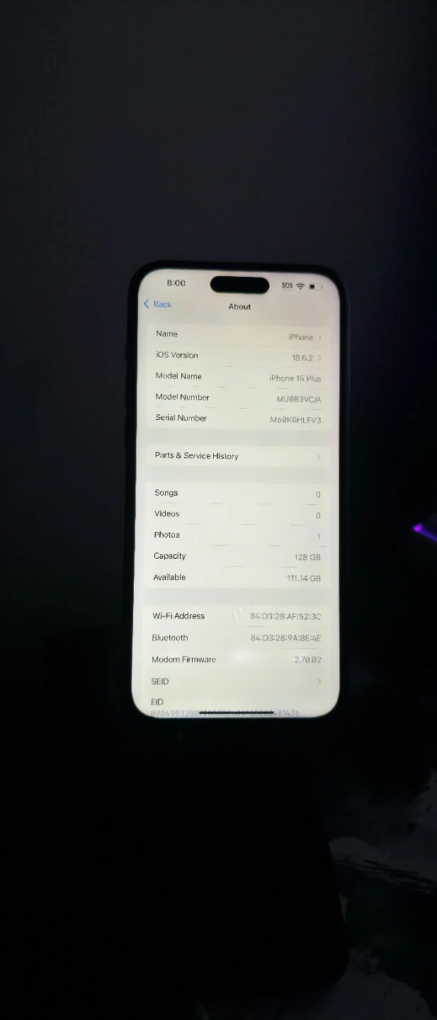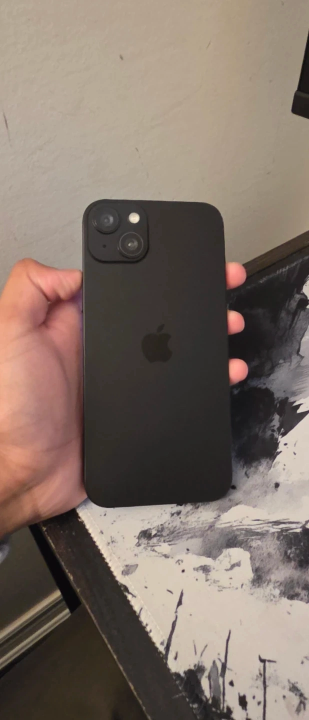iPhone 15 Plus with 128GB storage in black. Fully updated and mint condition. 100% battery health and screen replaced too