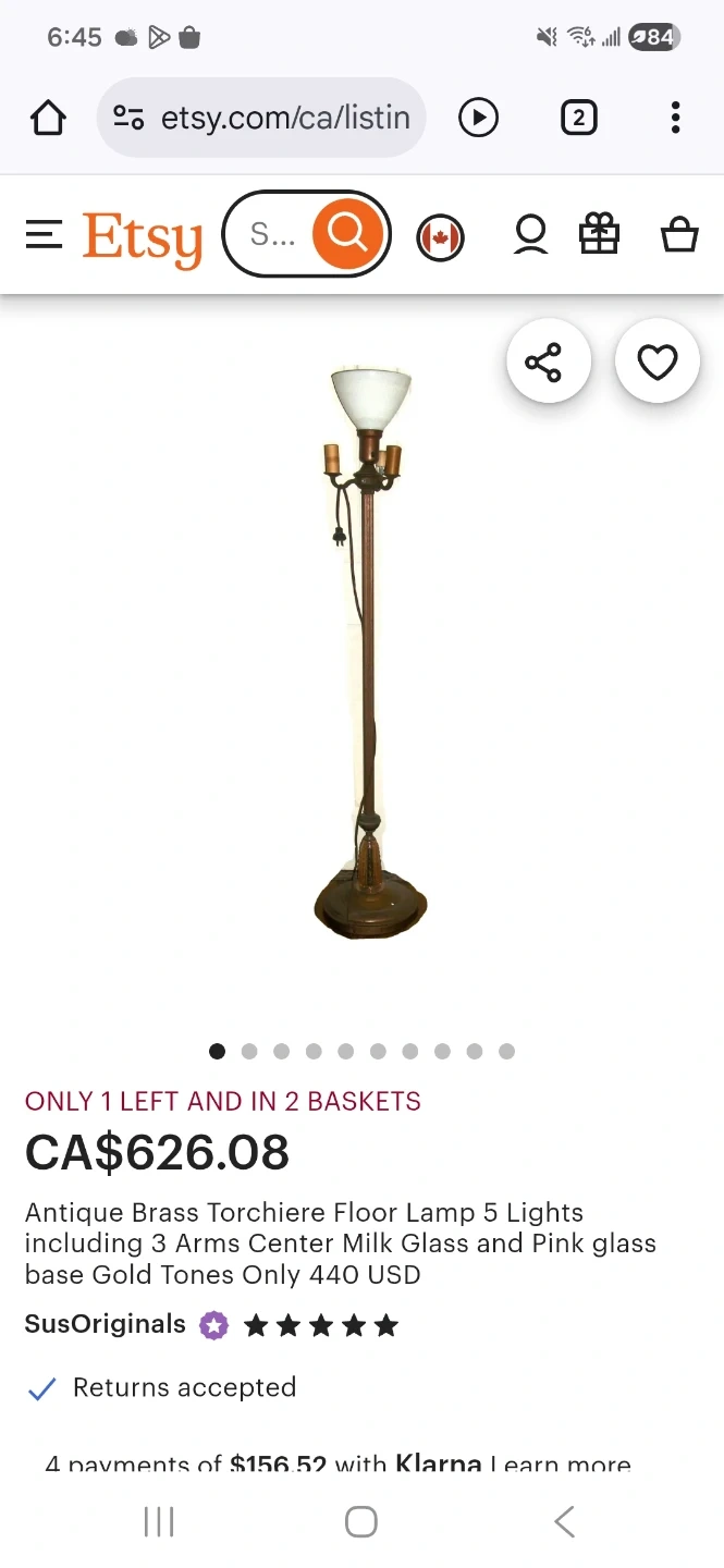 Vintage Brass Torchiere Floor Lamp with 3 Arms