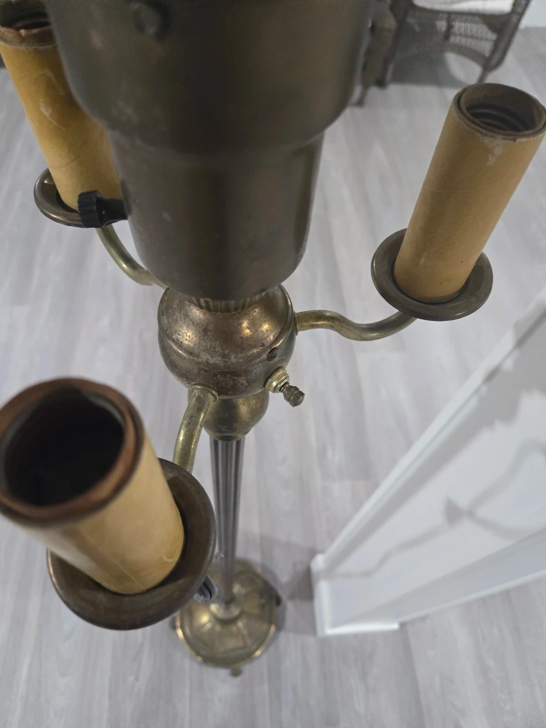 Vintage Brass Torchiere Floor Lamp with 3 Arms
