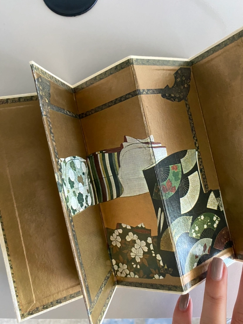 Vintage pamphlet style book with 4 miniature Japanese screens, featuring original artwork of the Momoyama Period. Made in Japan.