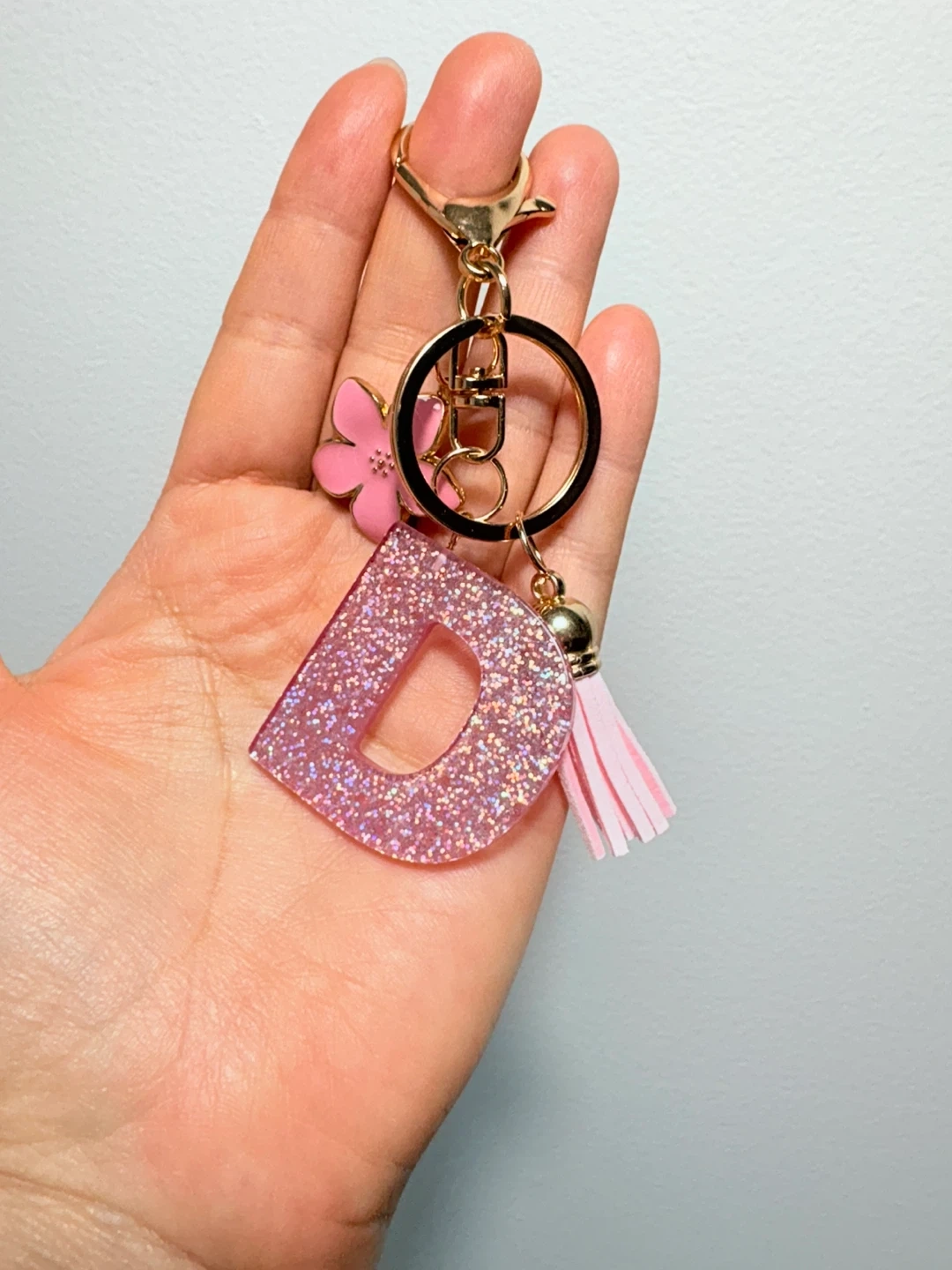Buy & SellPink Glitter Letter D Keychain with Flower and TasselPink Glitter Letter D Keychain with Flower and Tassel$6This keychain features a sparkling pink glitter letter D. It includes a cute pink flower charm and a matching pink tassel. The hardware is gold-toned.ConditionNewWHERE TO MEETCheck LocationView MapSELLERverifiedMabelToms River650 reviews0 chats·0 favorites·1 viewsSEND CHAT TO SELLERHi Mabel! I’m interested in your listing.Hi Mabel! I’m interested in your listing.Get the Karrot app to chatSign In to chat