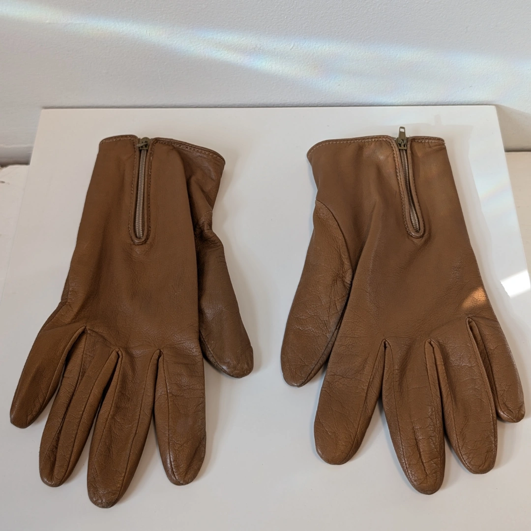 Danier brown genuine leather gloves with zipper in size medium. Perfect for the fall! Check out my other listings, I will be doing some decluttering!