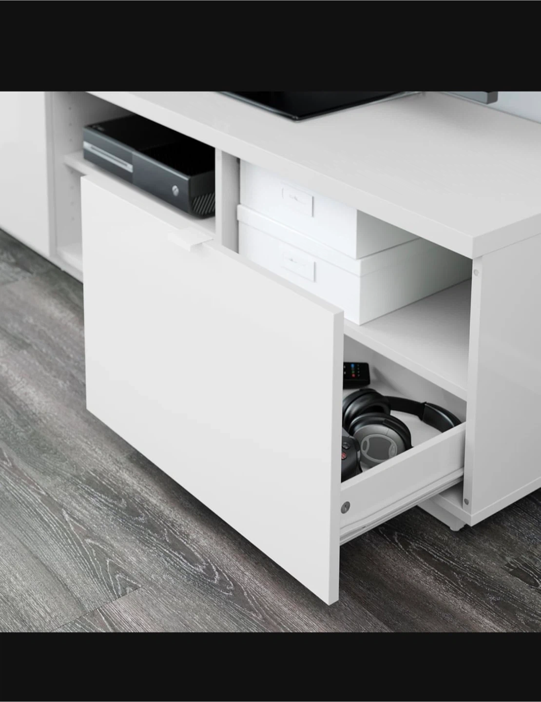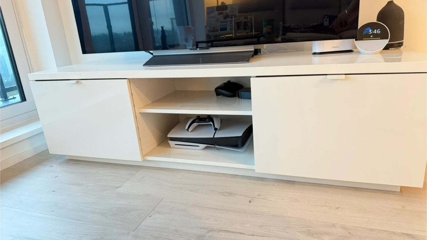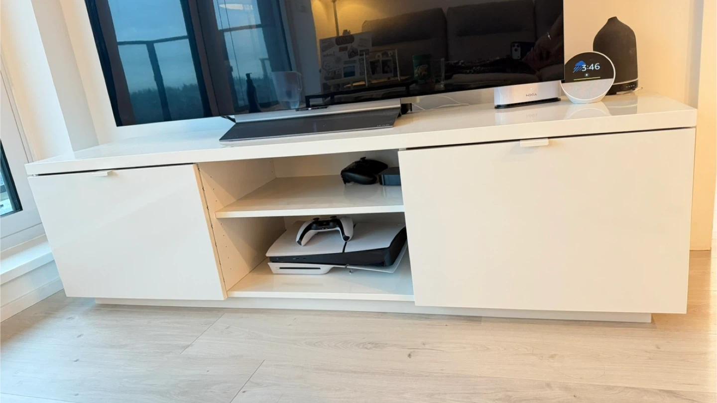 Selling a modern white IKEA TV unit in excellent condition. Original price $159 + tax, selling for $130.