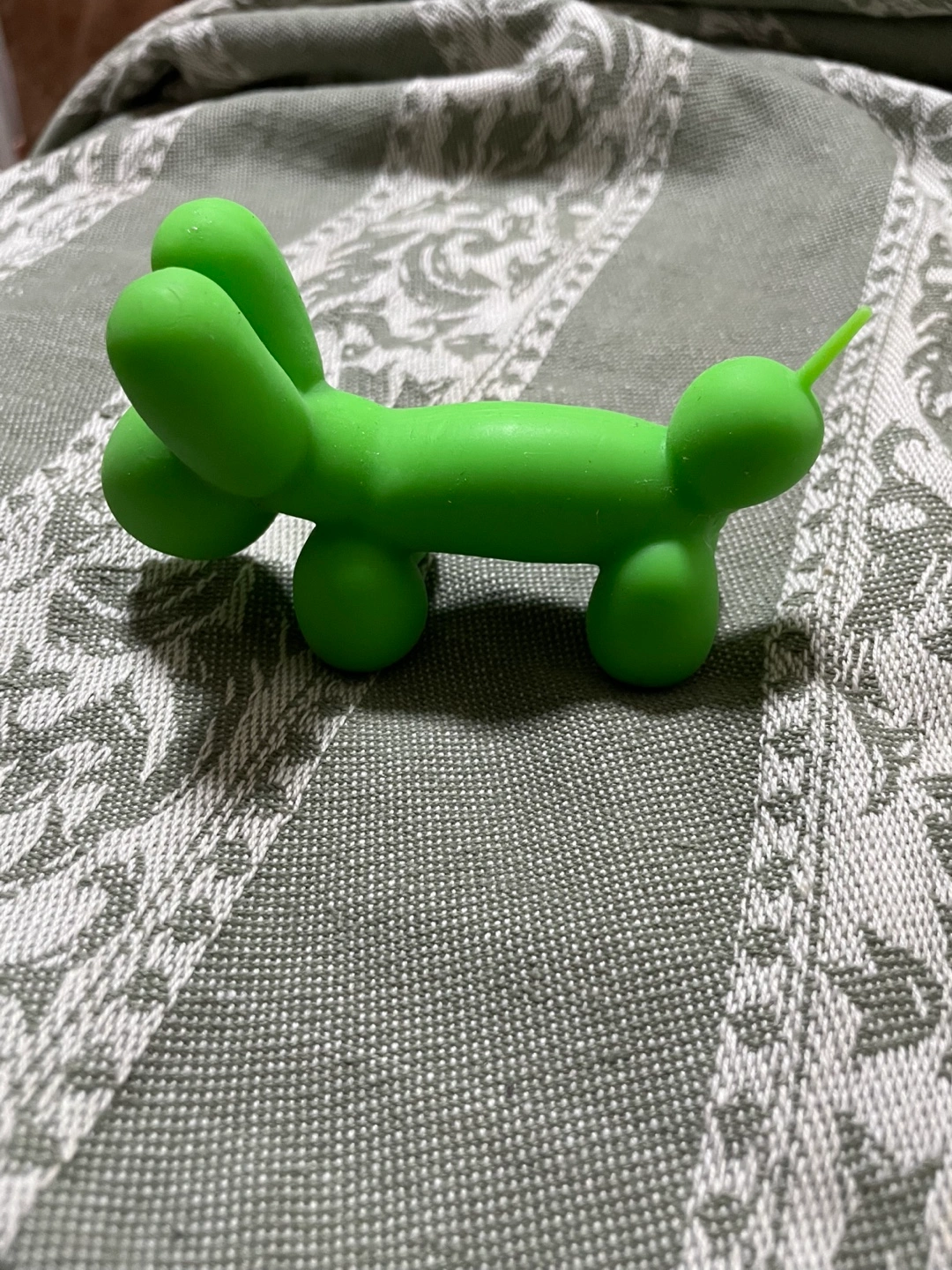Green coloured balloon animal toy stress toy. Squishy and stretchy. Shaped to resemble a dog made out of balloons. Will bring joy to people of all ages.