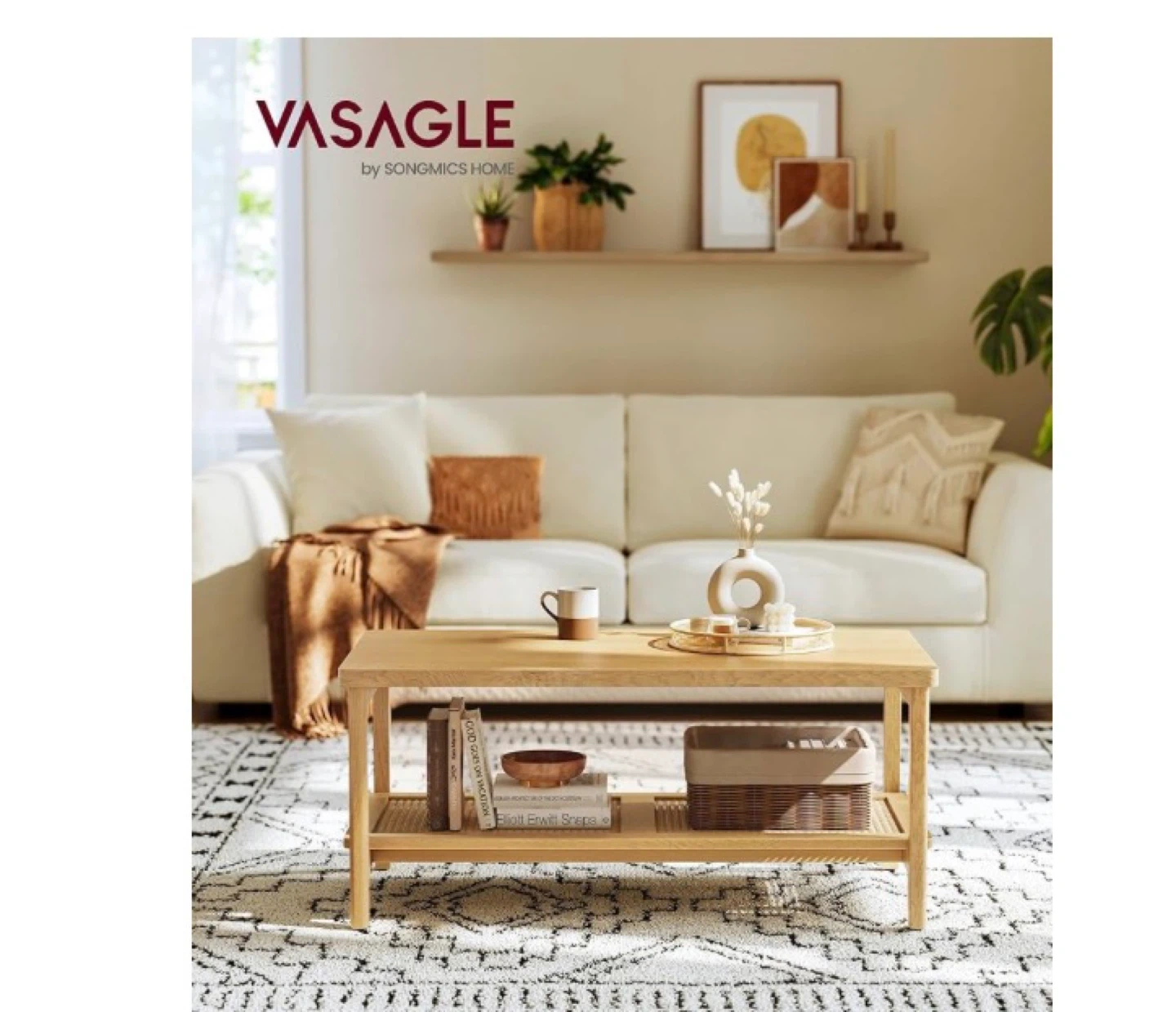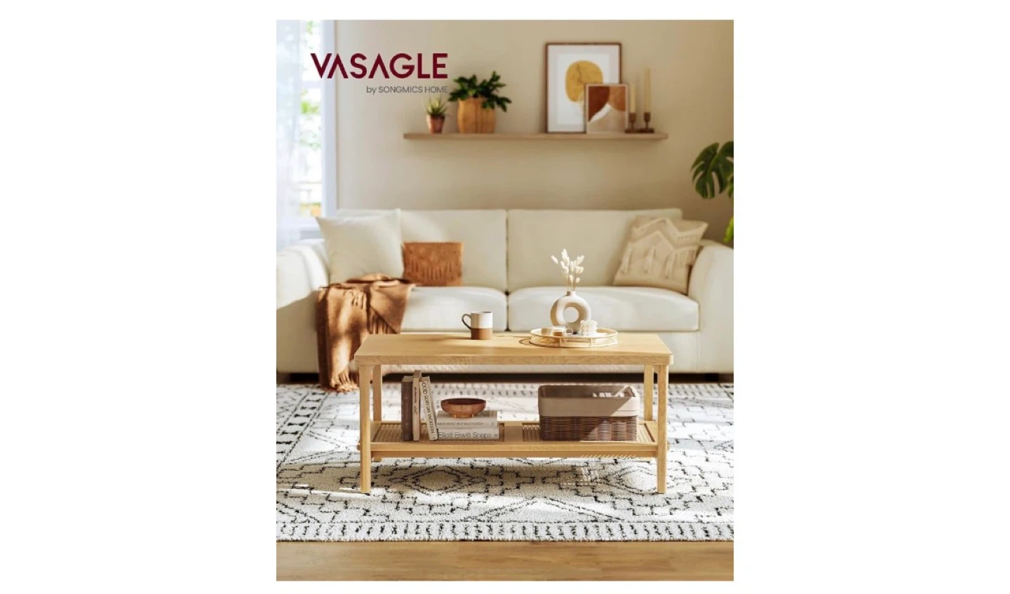 VASAGLE Wood Coffee Table with Shelf