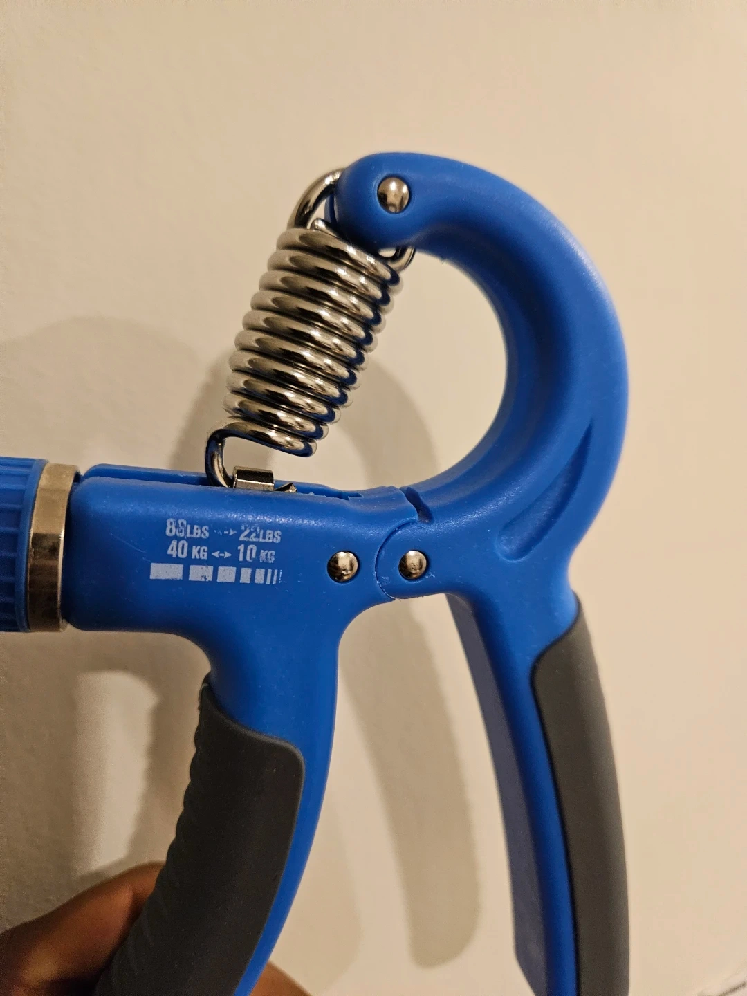This hand gripper offers adjustable resistance from 8 to 40 kg. It's designed with comfortable grips for regular use. This tool is useful for building hand and forearm strength.