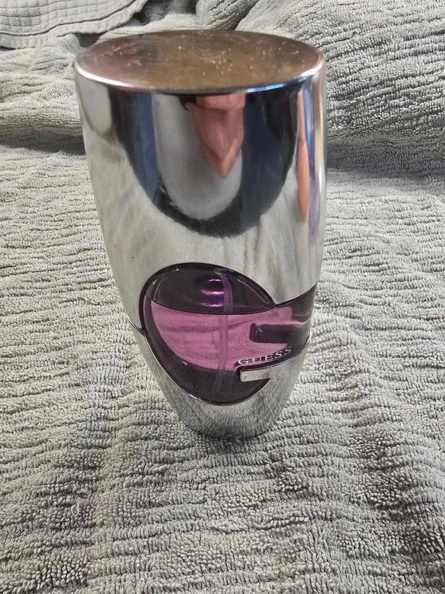Selling a used bottle of Guess perfume, 75ml size, with a unique and eye-catching design. It's partially used, but still has plenty of fragrance left. This item is in good condition. It's a great way to express your individuality and make a lasting impression. If you've been searching for that signature scent or a special gift, this could be it! I estimate the value to be around $25 based on similar listings. Cash accepted.
