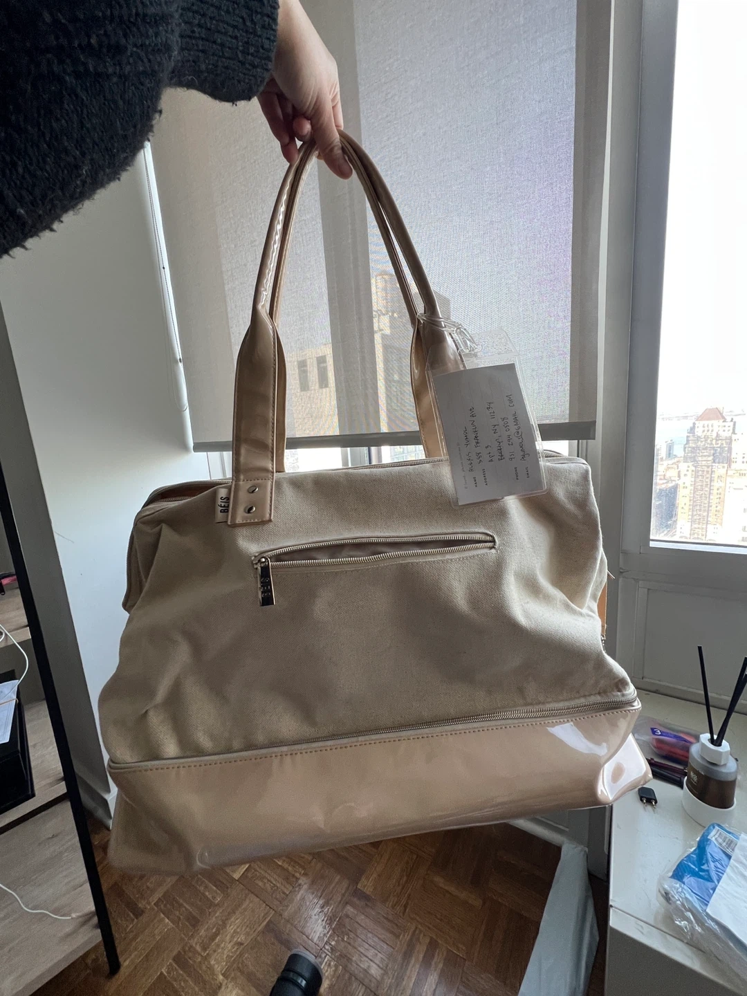 Like-new BEIS canvas weekender bag. It has a spacious main compartment with interior pockets and a zippered front pocket. There's also a zippered compartment along the bottom for extra storage!