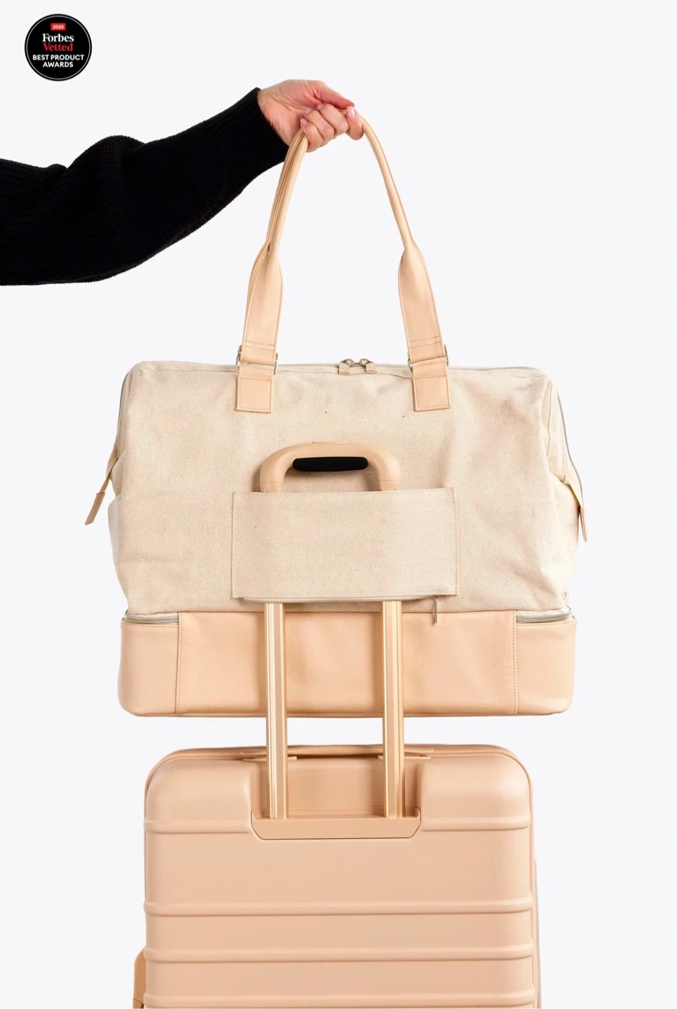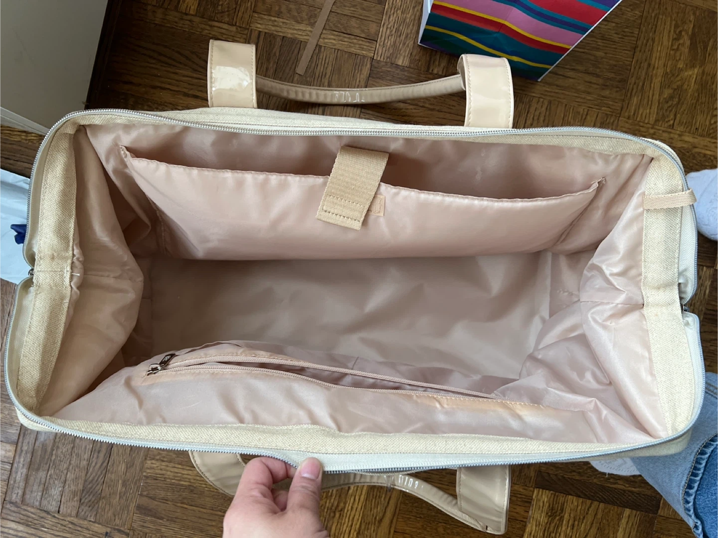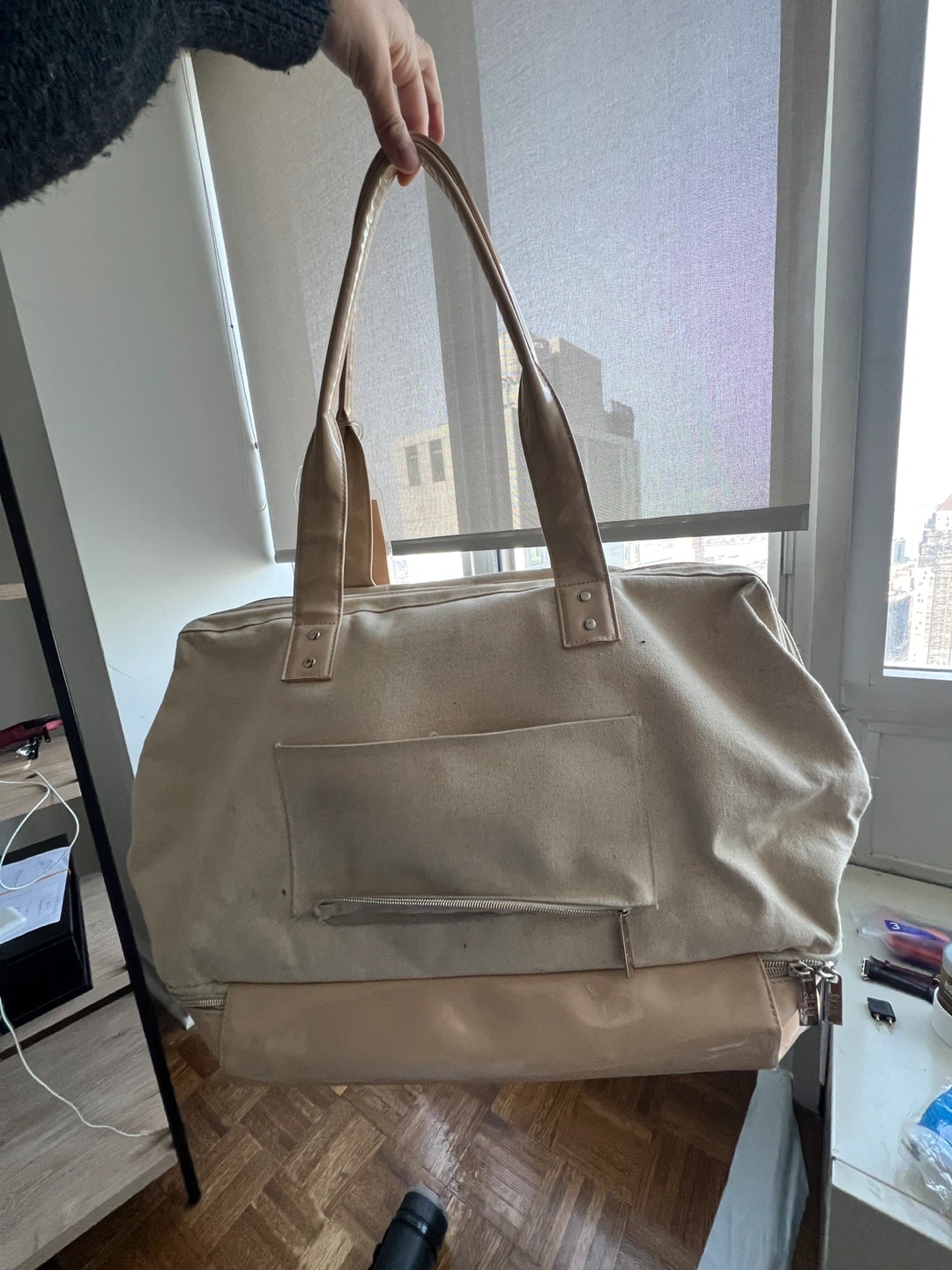 Like-new BEIS canvas weekender bag. It has a spacious main compartment with interior pockets and a zippered front pocket. There's also a zippered compartment along the bottom for extra storage!