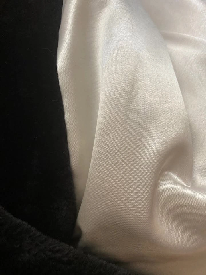 Stay cozy with this Cruella Deville-esque fuzzy jacket. It is incredibly soft on the outside and lined with satin fabric. This item is size Large. The photos show a medium size for reference.