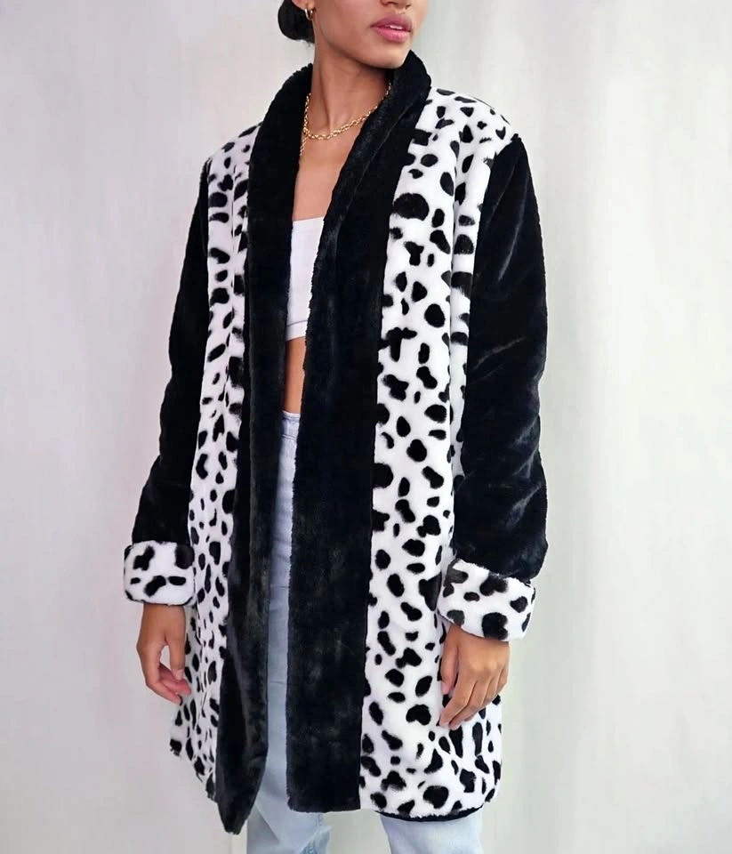 Cruella Deville Dalmatian Print Fuzzy Jacket - Size L