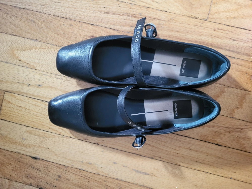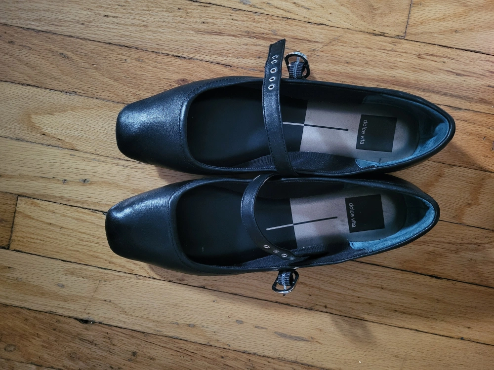 Black genuine leather ballerina Mary Jane flats with buckle. Size 8. So cute!!! I love them but sadly my feet are too wide for them. They are very flattering and well made. Worn only 3 times. Original price was $140 plus tax!