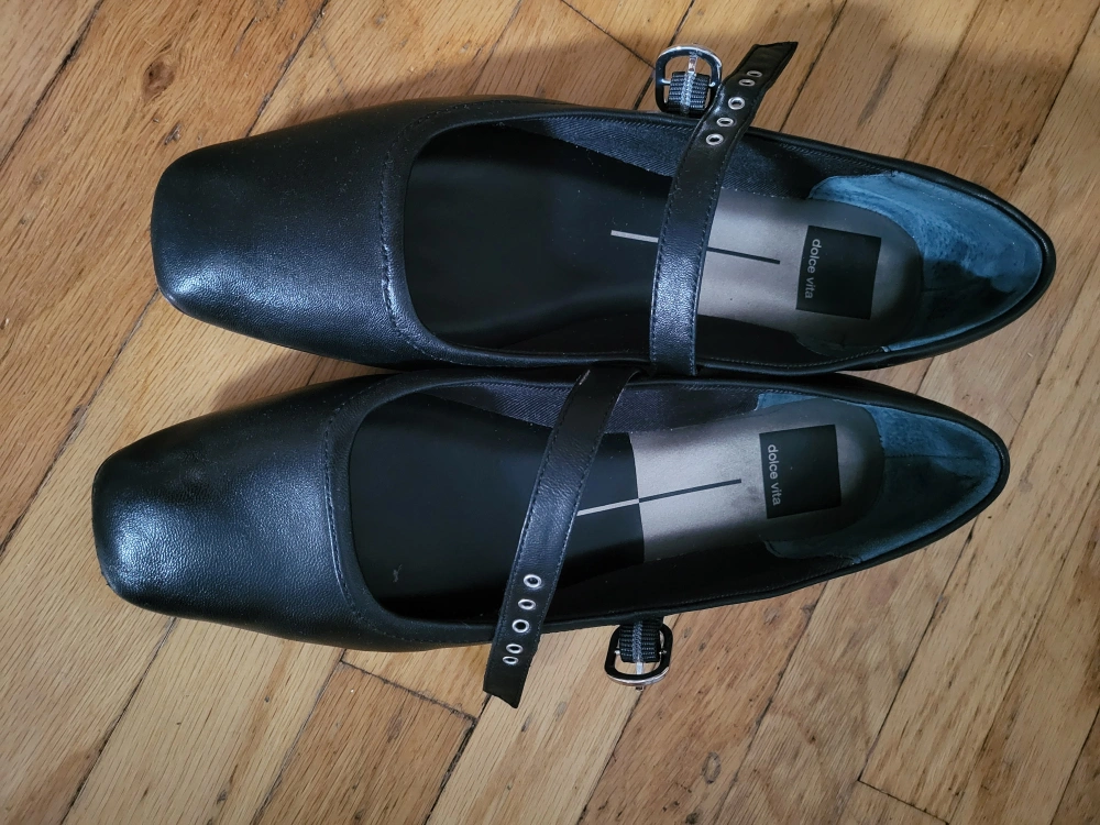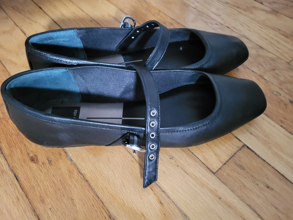 Black genuine leather ballerina Mary Jane flats with buckle. Size 8. So cute!!! I love them but sadly my feet are too wide for them. They are very flattering and well made. Worn only 3 times. Original price was $140 plus tax!