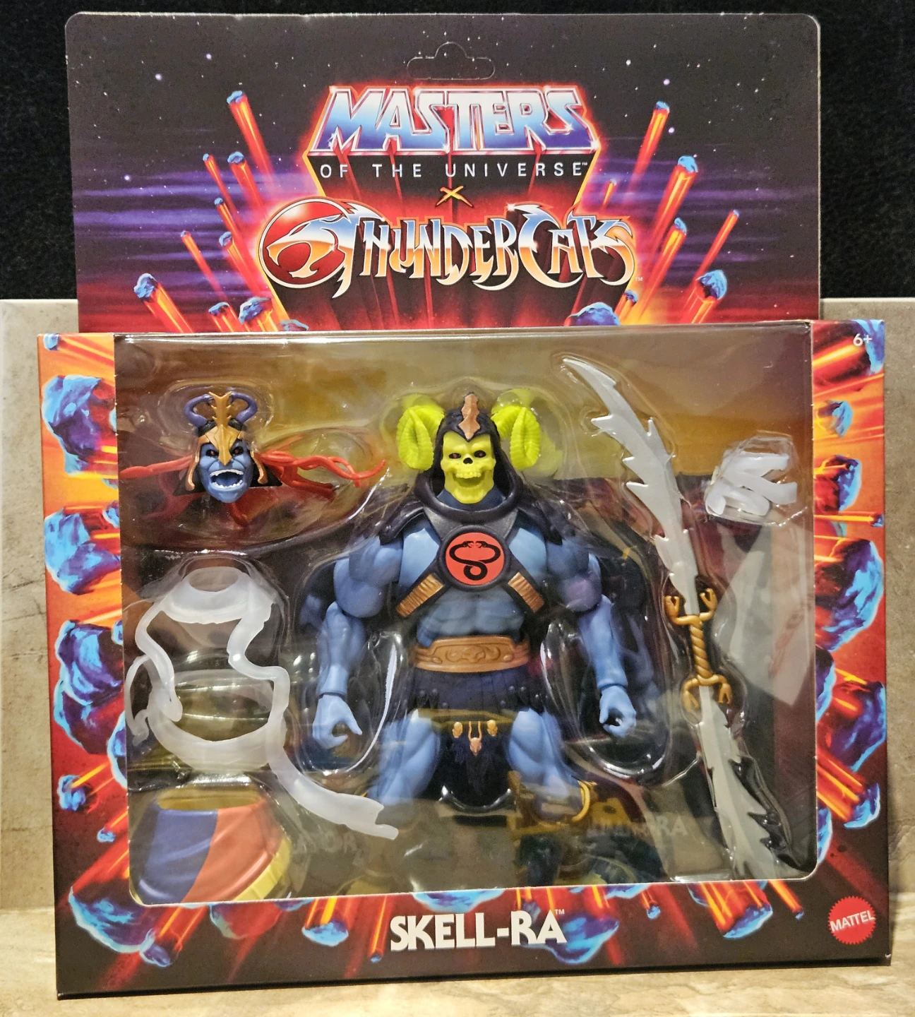 Selling a brand new, still-in-box Masters of the Universe Skell-Ra action figure! This awesome figure is a crossover with Thundercats, making it a unique addition to any collection. The box includes the figure and accessories. A great gift for any fan!