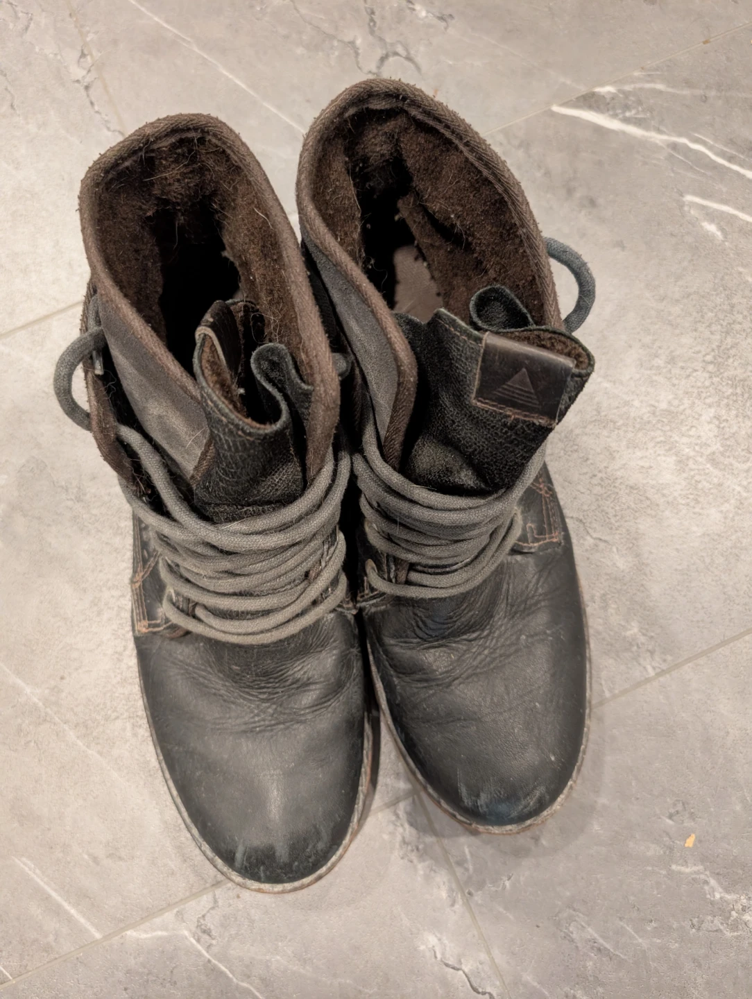 These KEEN Utility work boots are built for tough jobs. They're waterproof with a durable leather upper and a slip-resistant outsole. The boots are a size 9 US Men's and feature a comfortable cushioned footbed. They're lined for warmth, making them a great choice for cooler weather or demanding work environments. Worn 3 timea