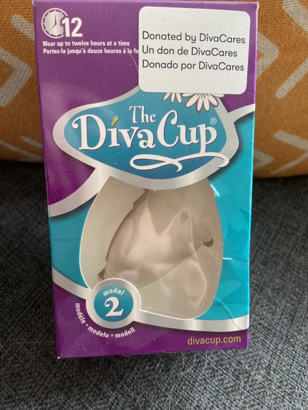 The Diva Cup is a reusable menstrual cup. It's designed for wear up to twelve hours at a time. Model 2.