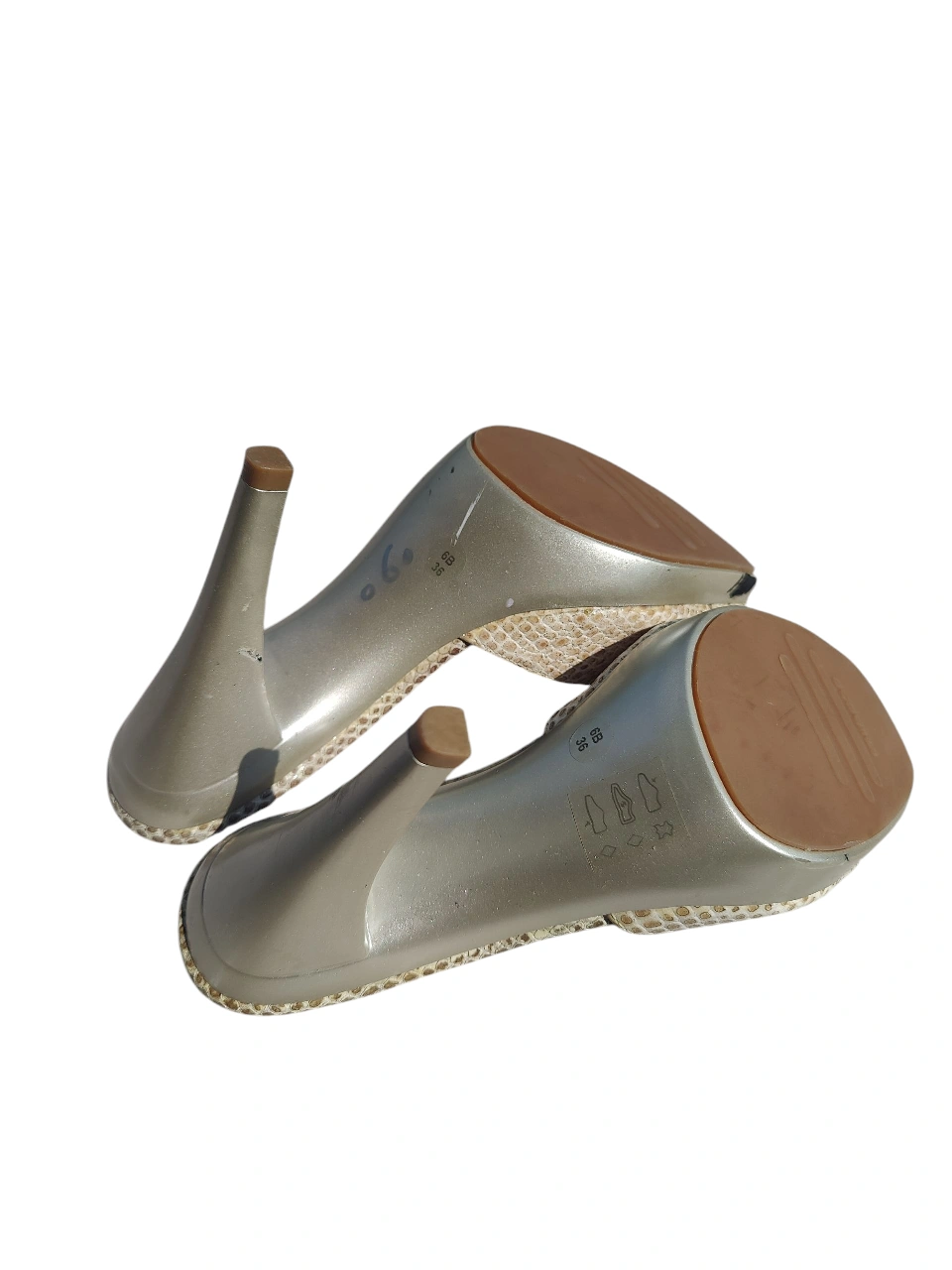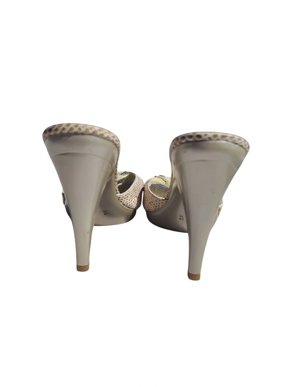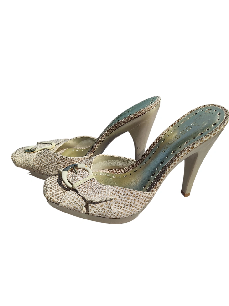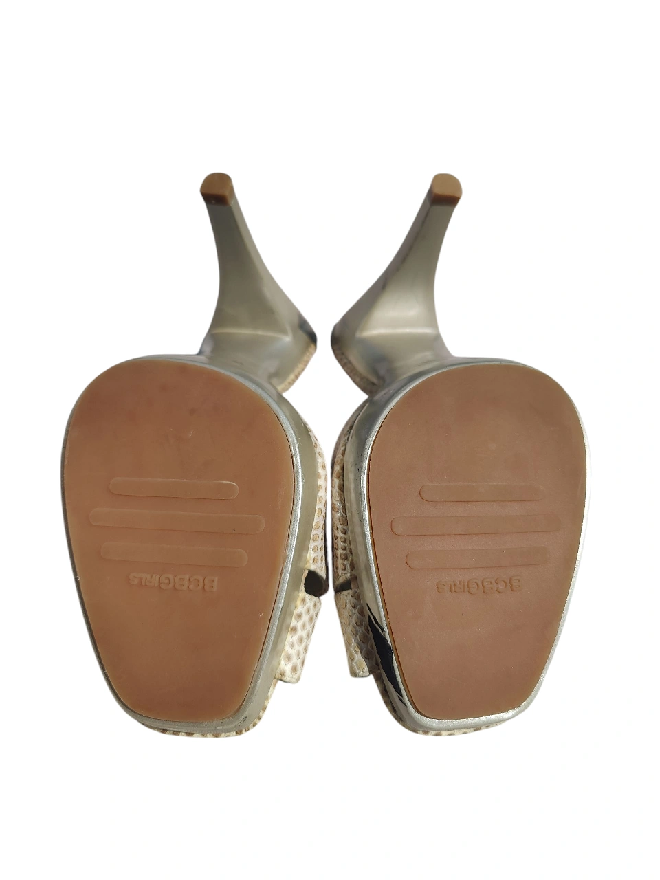 These BCBGirls heels feature a snakeskin pattern and a stylish buckle detail. They are a size 6 and would be a great addition to your wardrobe!