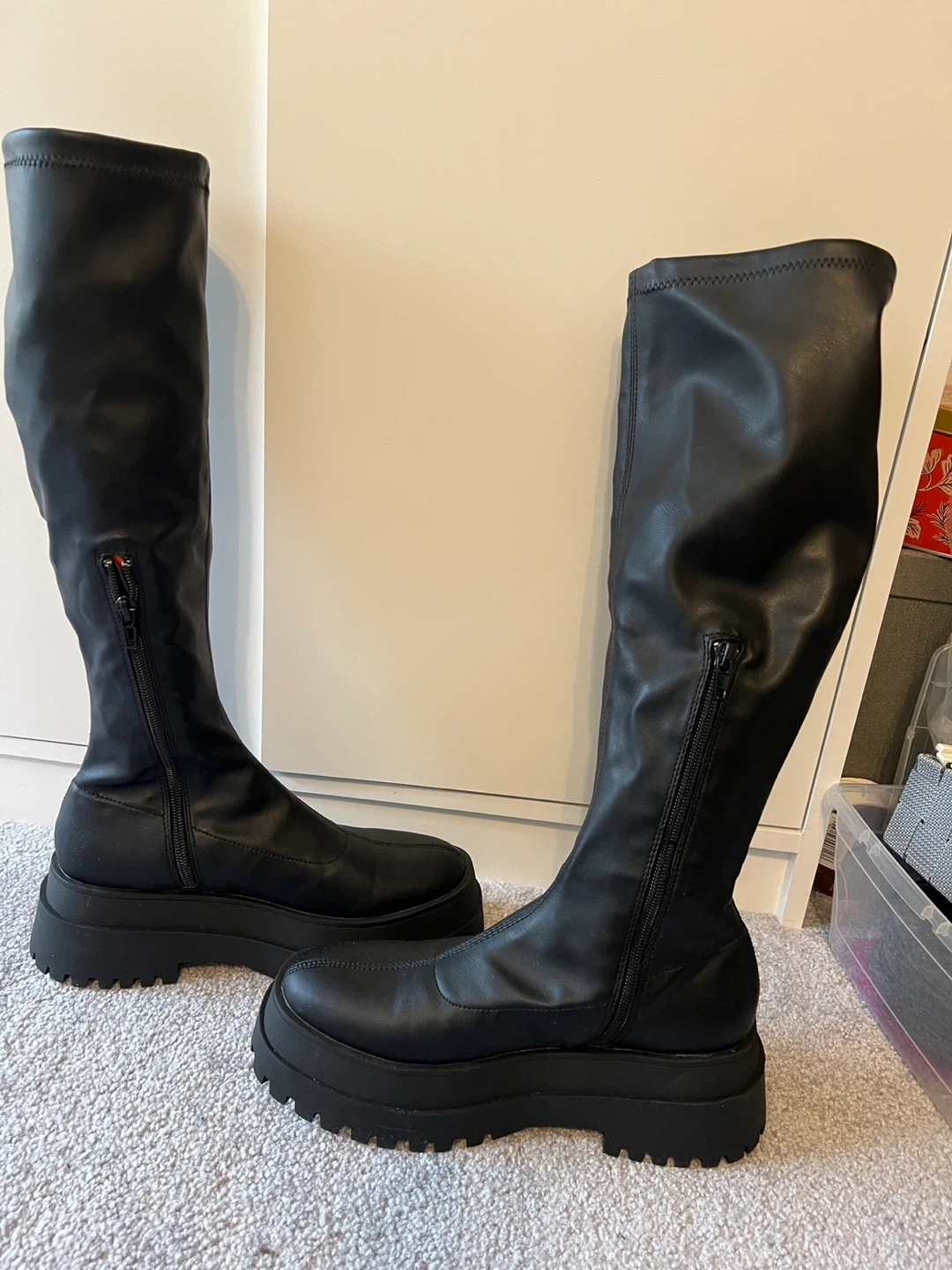 5Selling a pair of Public Desire black platform boots in size 6 (size 37 on the sole). These boots come with their original box. They're perfect for adding a bit of edge to any outfit! Brand new in box