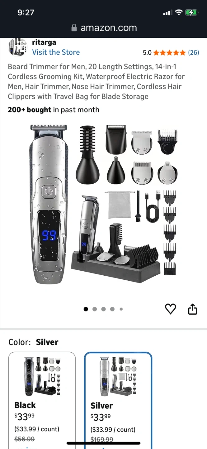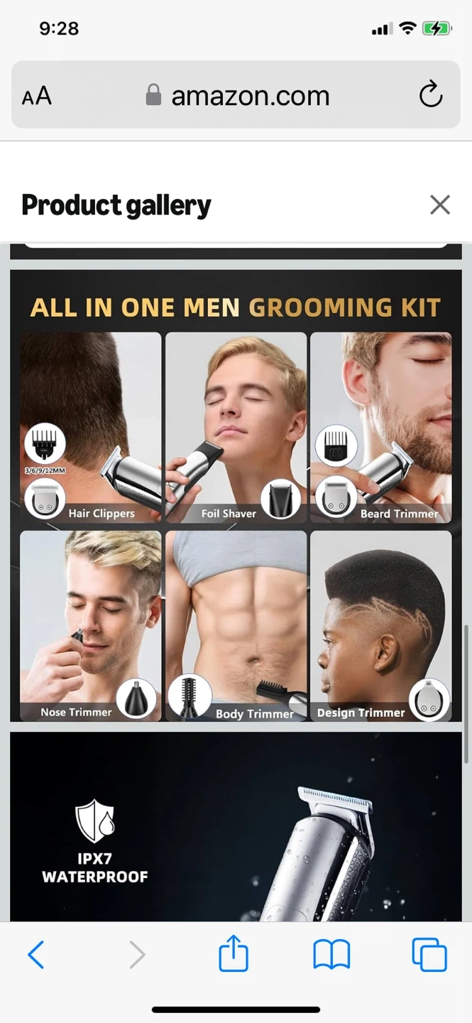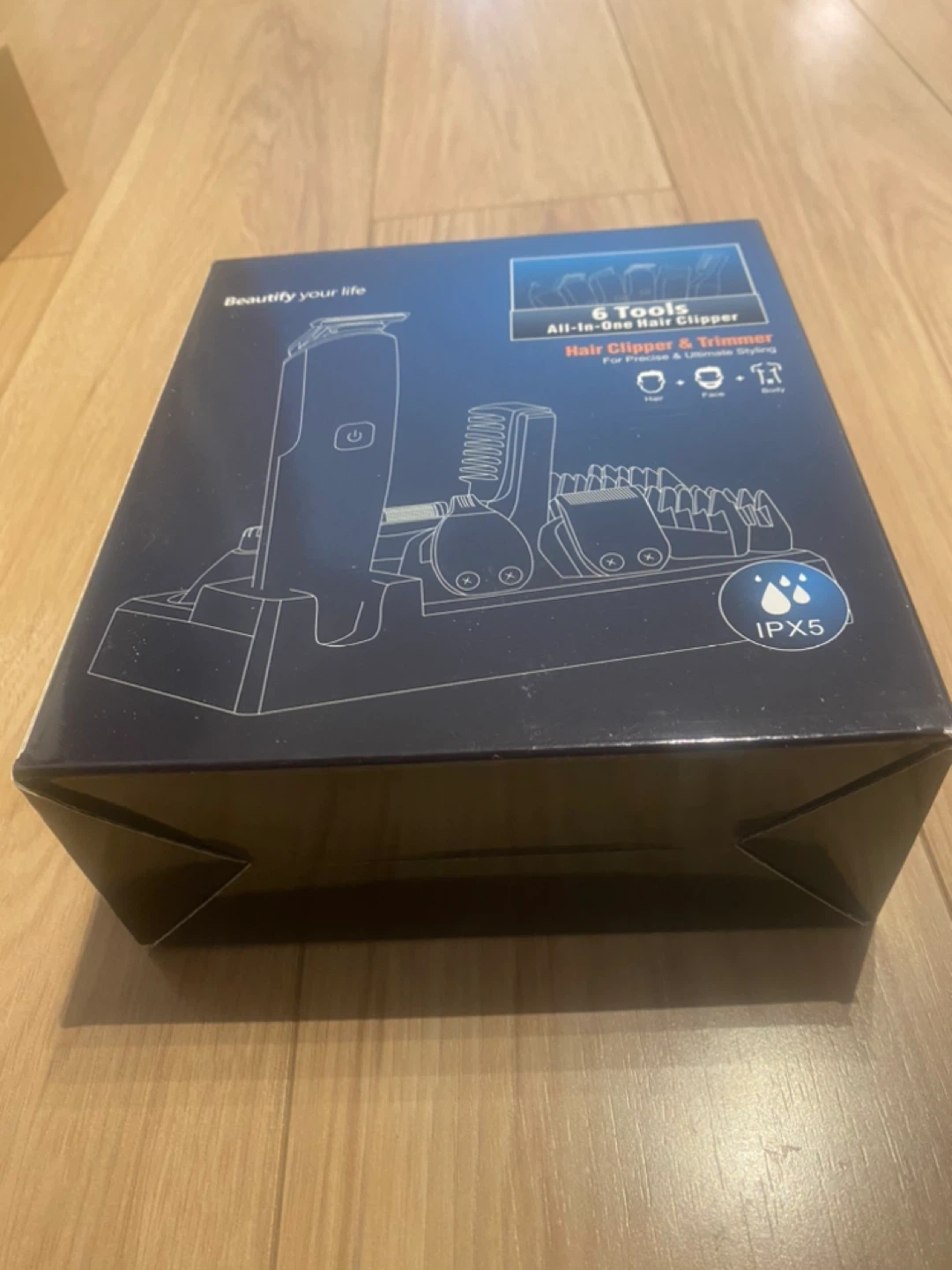 This is a 6-in-1 grooming kit for men, perfect for home or travel. It includes a beard trimmer, hair clippers, and nose trimmer. The kit is waterproof with IPX7 rating and has a powerful motor with stainless steel blades. It offers 180 minutes of working time on a 60-minute charge.