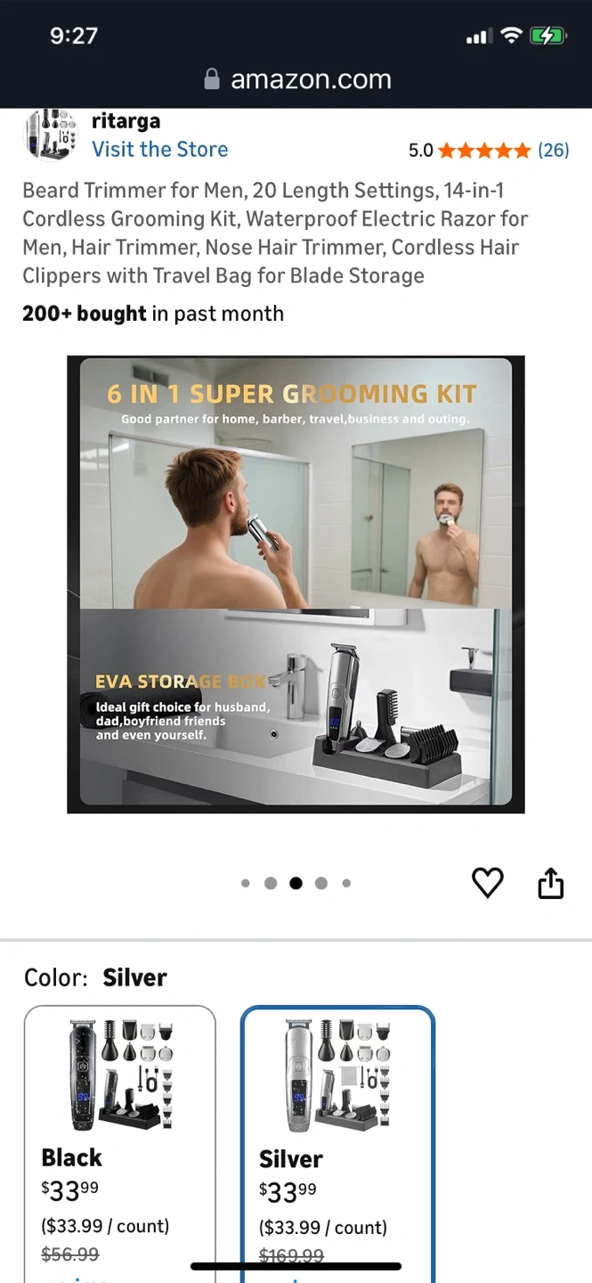 This is a 6-in-1 grooming kit for men, perfect for home or travel. It includes a beard trimmer, hair clippers, and nose trimmer. The kit is waterproof with IPX7 rating and has a powerful motor with stainless steel blades. It offers 180 minutes of working time on a 60-minute charge.