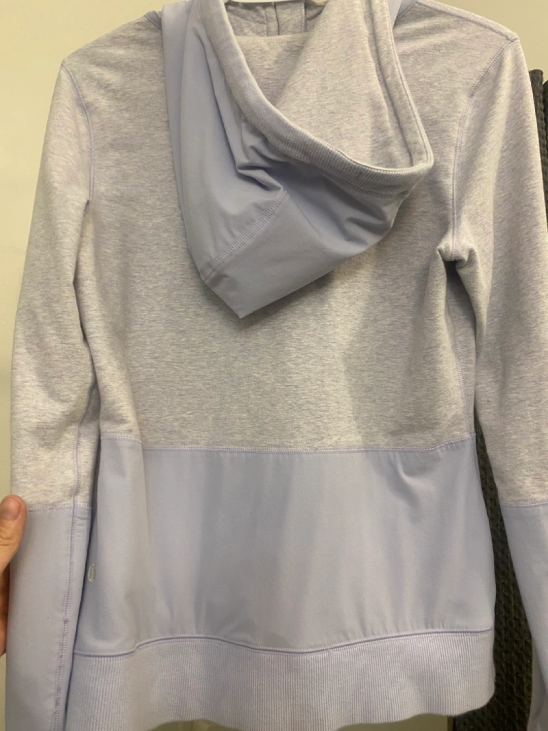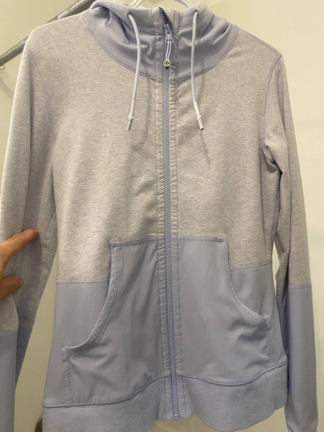 Lululemon zip-up hoodie. Two-tone colour block design. Features a hood and pockets. Great for layering or wearing on its own. Size 6 kind of periwinkle in colour . Pick up Port Elmsley