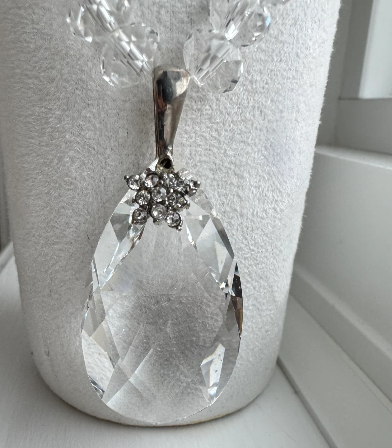 Vintage Handmade Clear Crystal Glass Faceted Beaded Statement Necklace Jewelry with Large Pendant