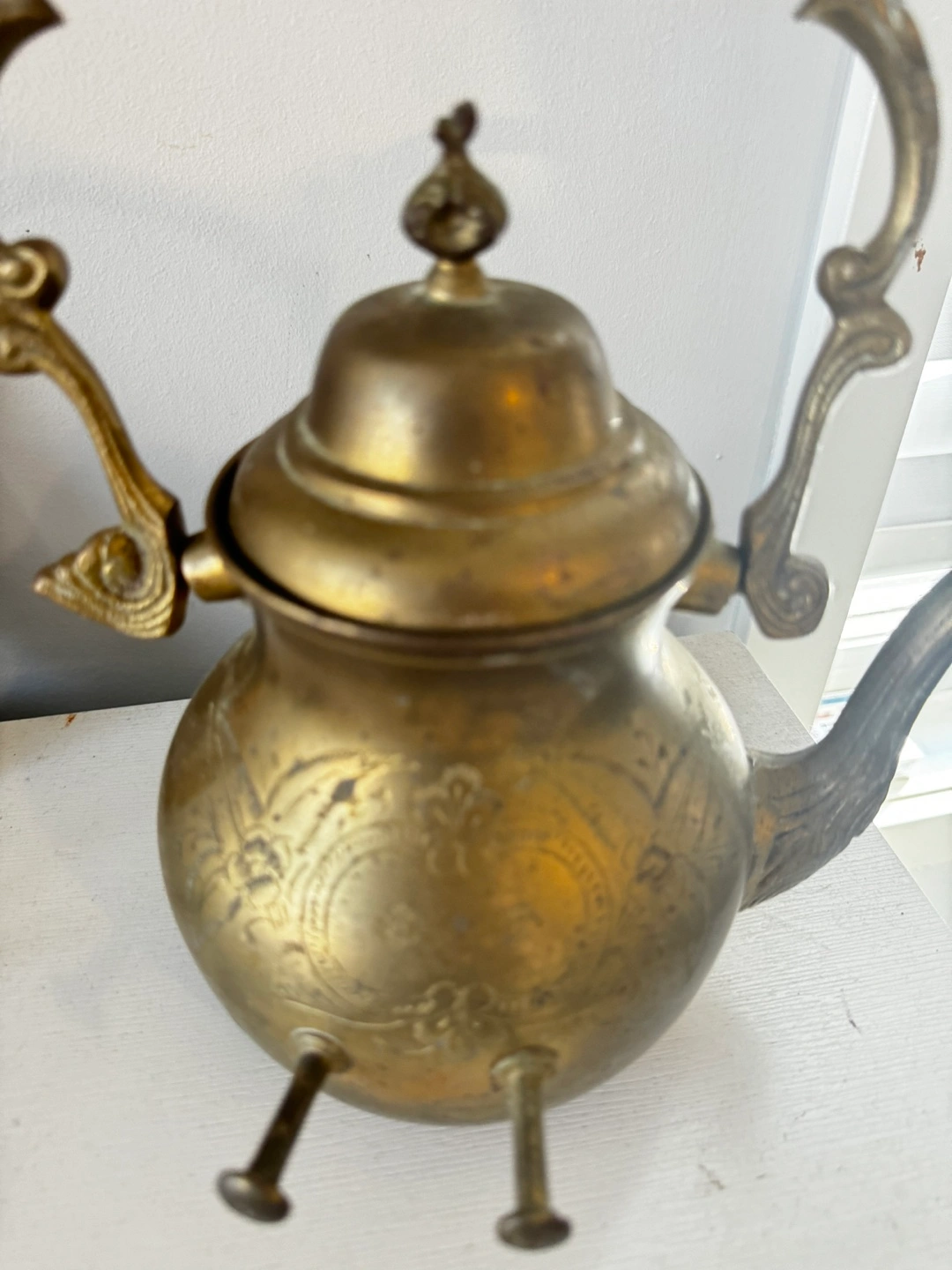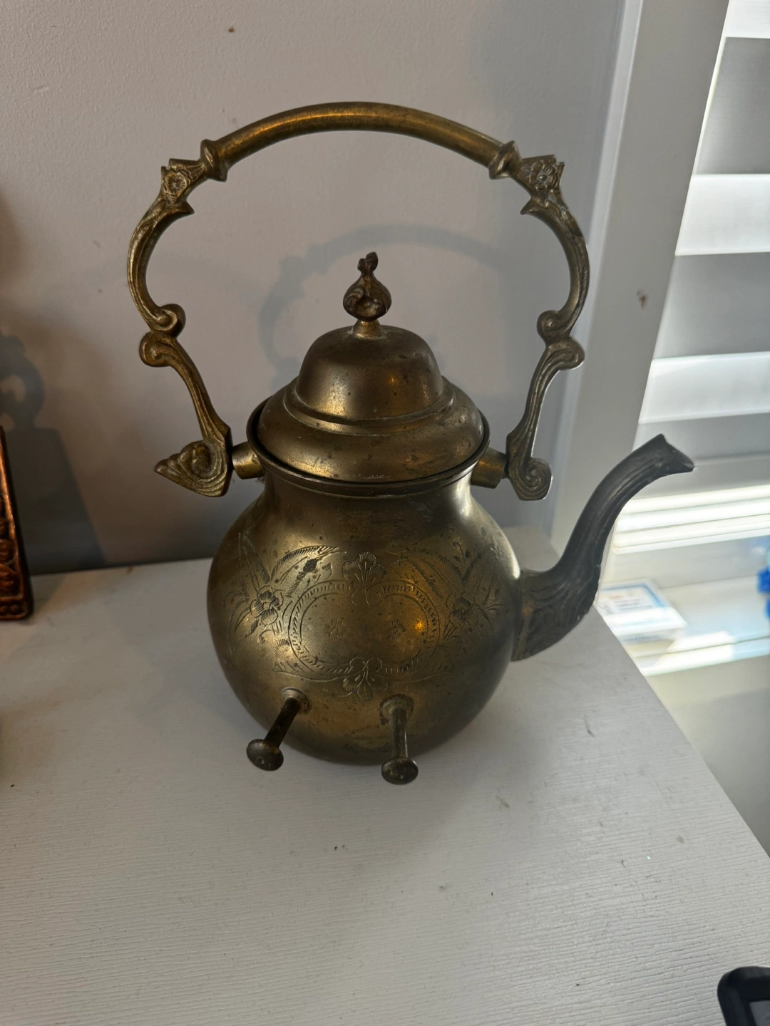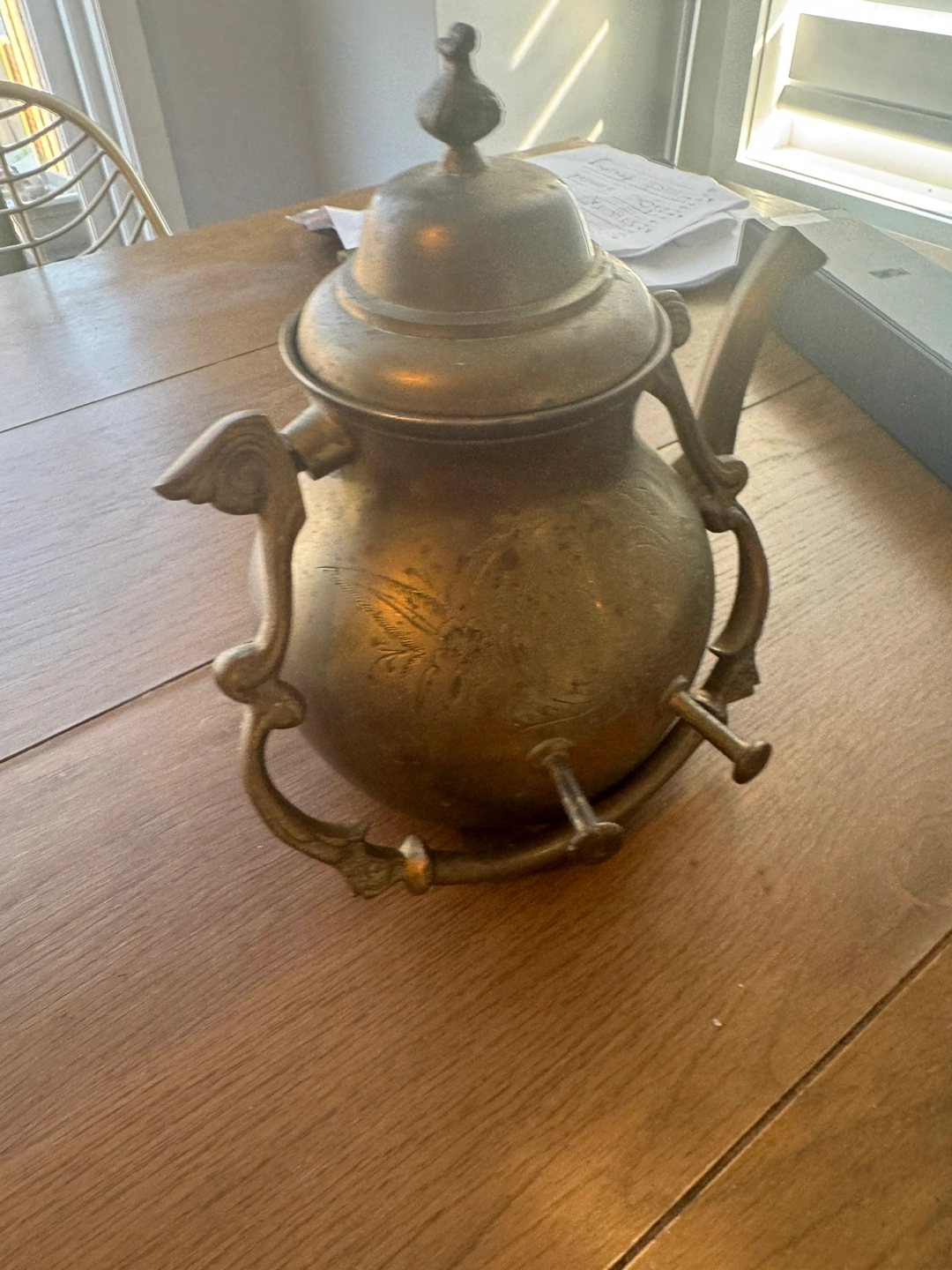 Selling a vintage brass kettle. It has a unique design and would make a great decorative piece for your home