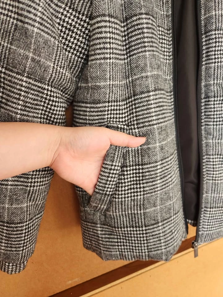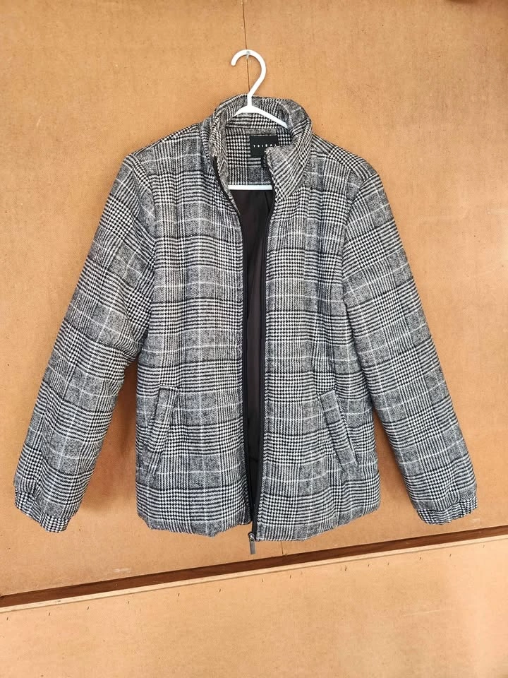 283Puffer jacket in great condition • Sleek houndstooth black and white pattern • Women's medium • Soft exterior Pick up at Bayview and Sheppard