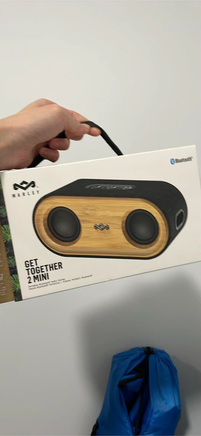 This is the House of Marley Get Together 2 Mini portable Bluetooth speaker. It features a durable construction with bamboo accents. Its compact size makes it easy to bring your tunes anywhere!