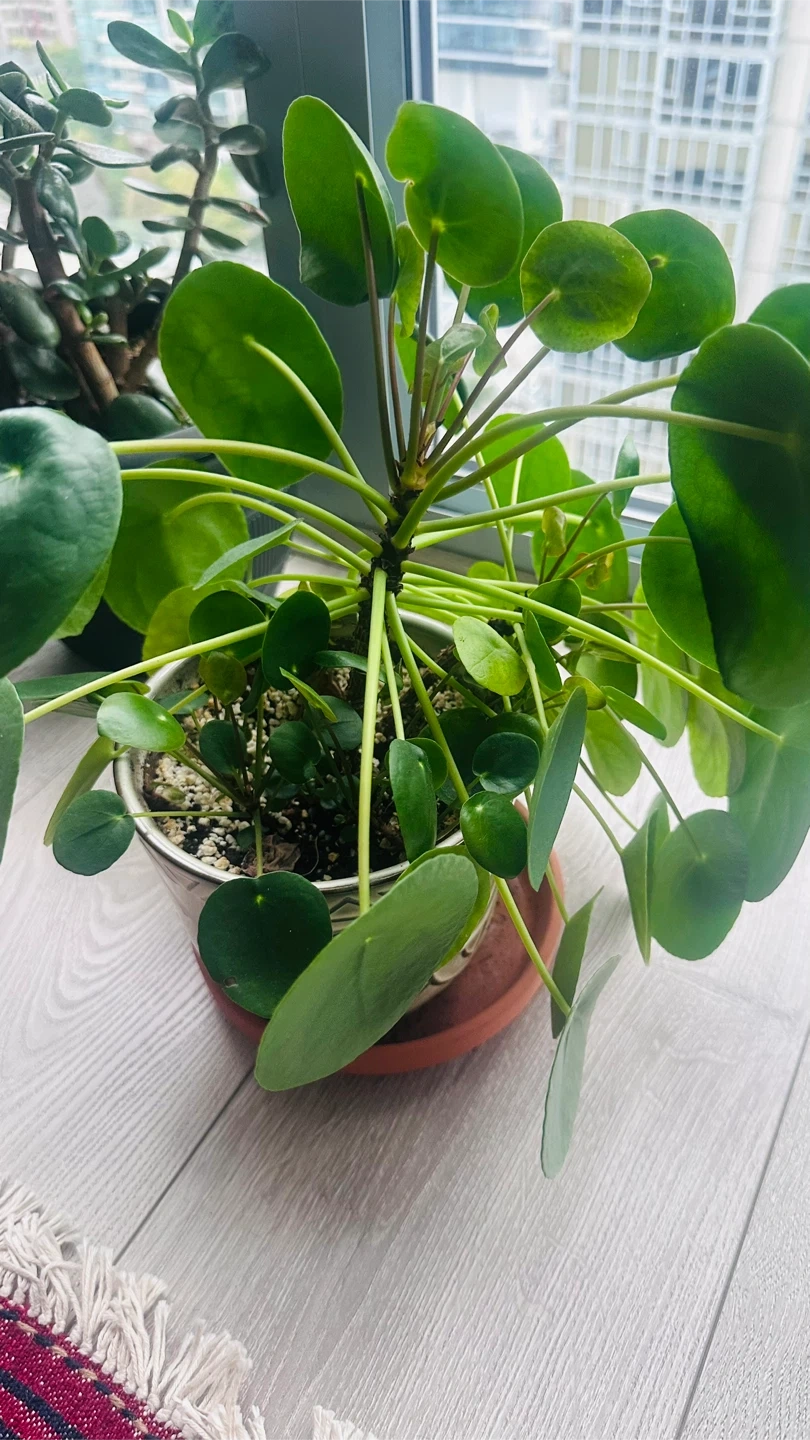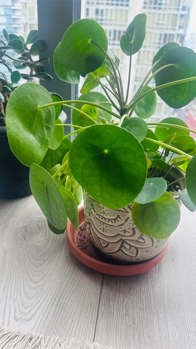 Selling a healthy Chinese money plant! It's currently potted and ready to brighten up your space. This plant is known for its unique, round leaves and is relatively easy to care for, making it a great addition to any home or office
