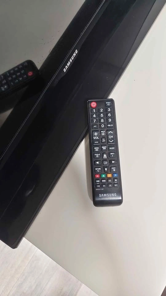 Samsung Smart TV, works perfectly and is in great shape. It has a small chip on the side, as shown in the pictures, but it doesn't affect the TV's functionality. Comes with the remote.