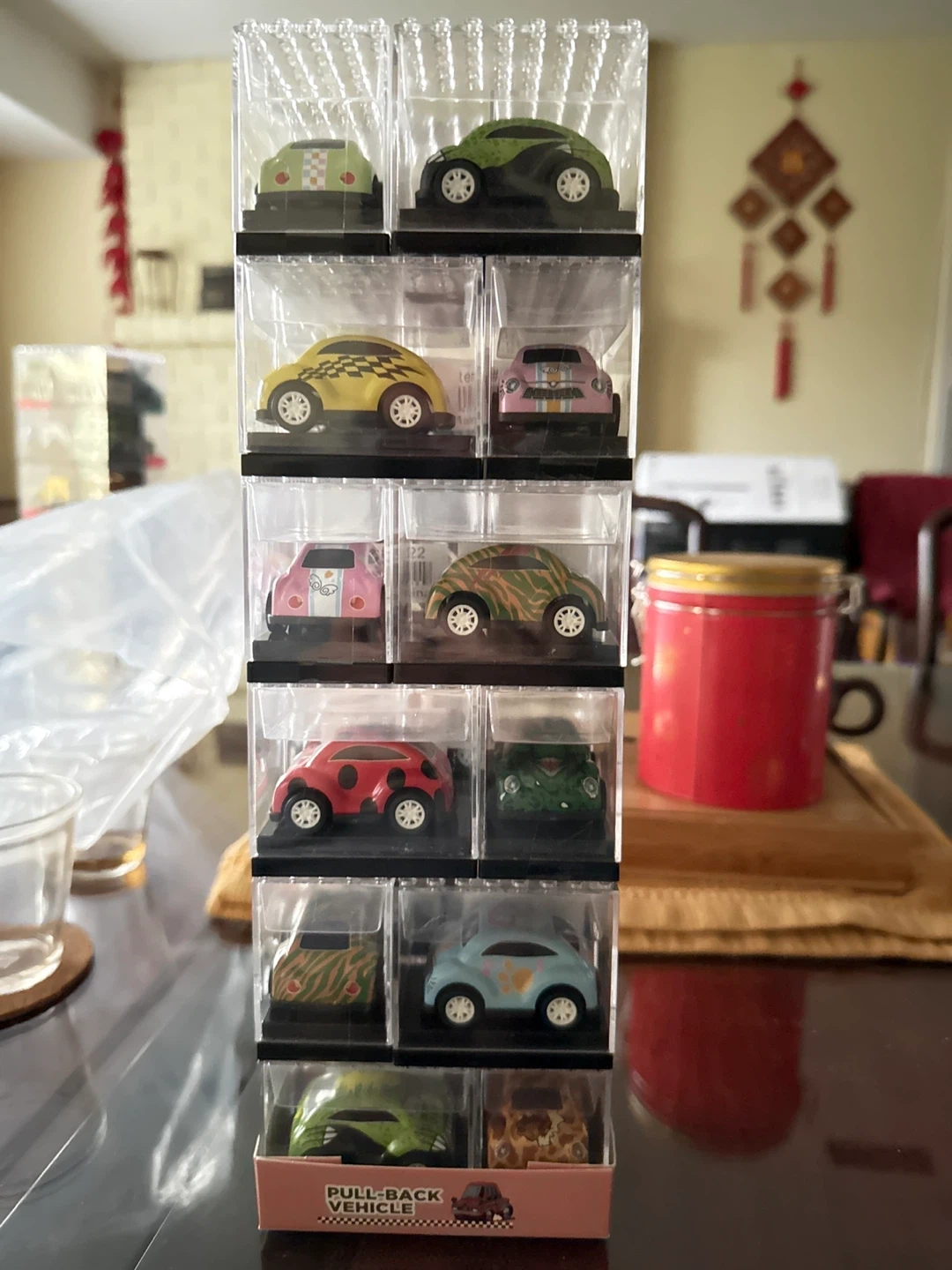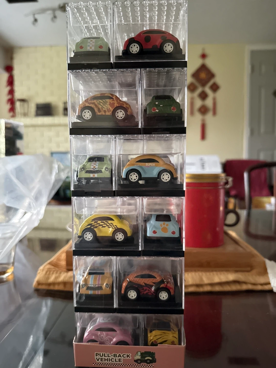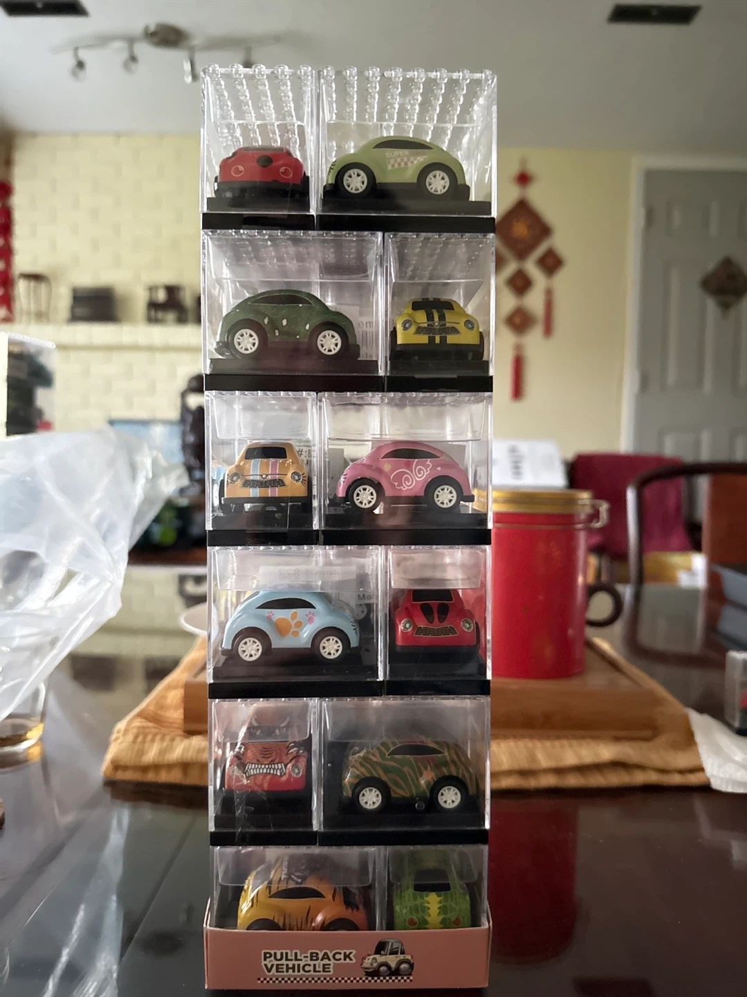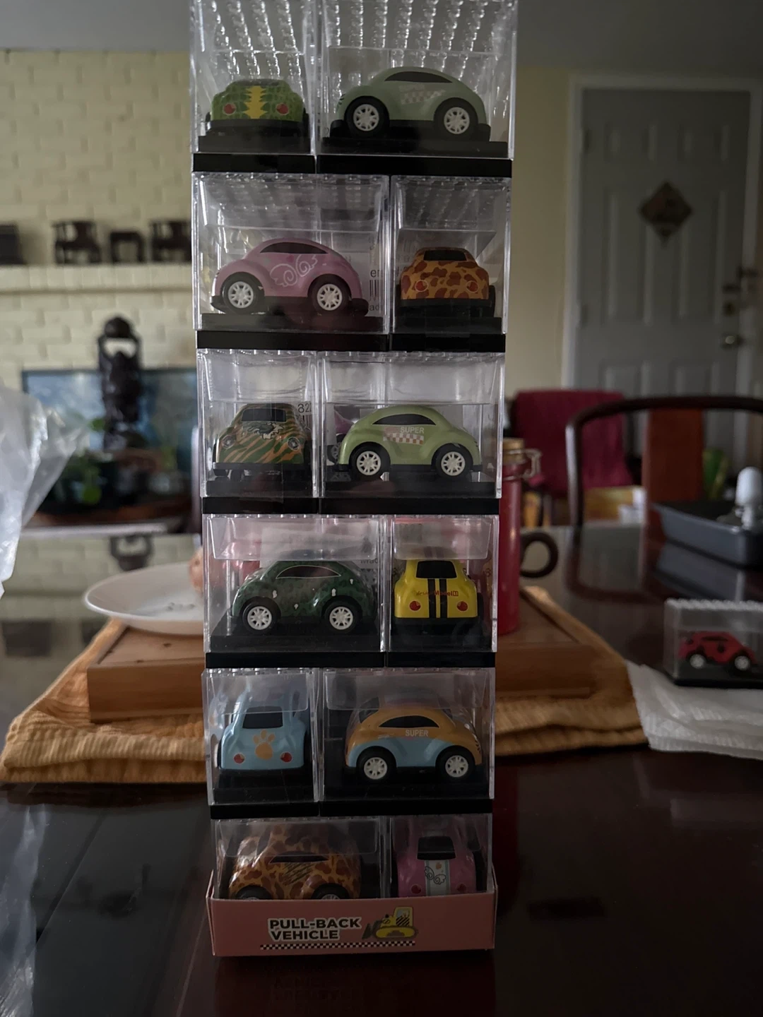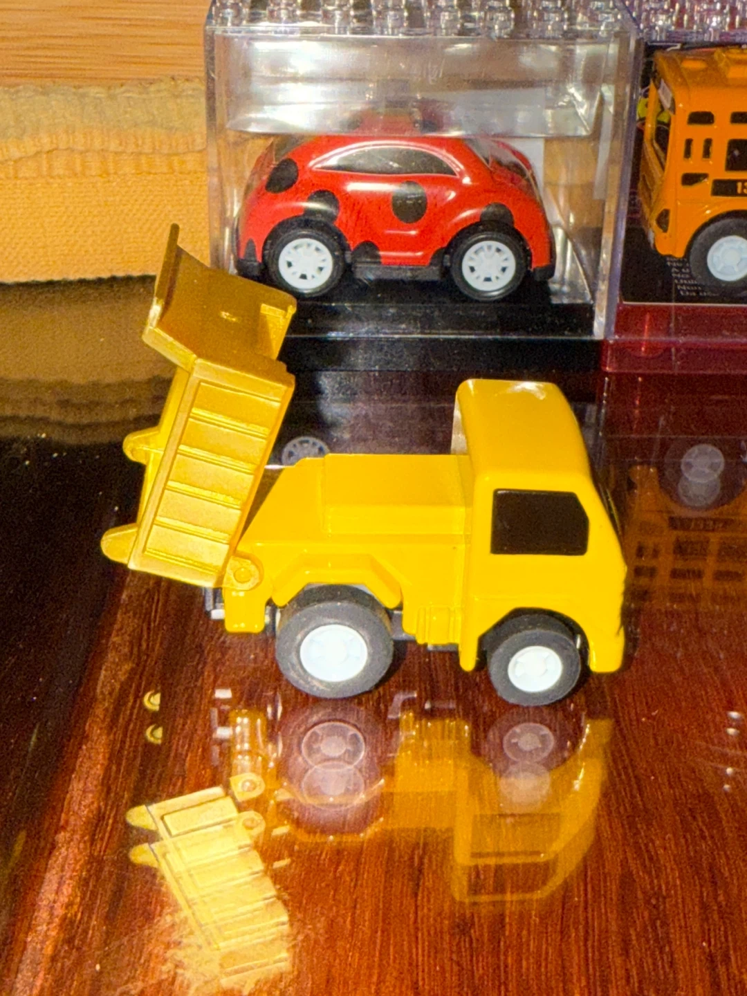 10Selling a set of pull-back vehicles, including toy cars and a yellow dump truck! The cars are in individual display cases, and the set comes in its original box