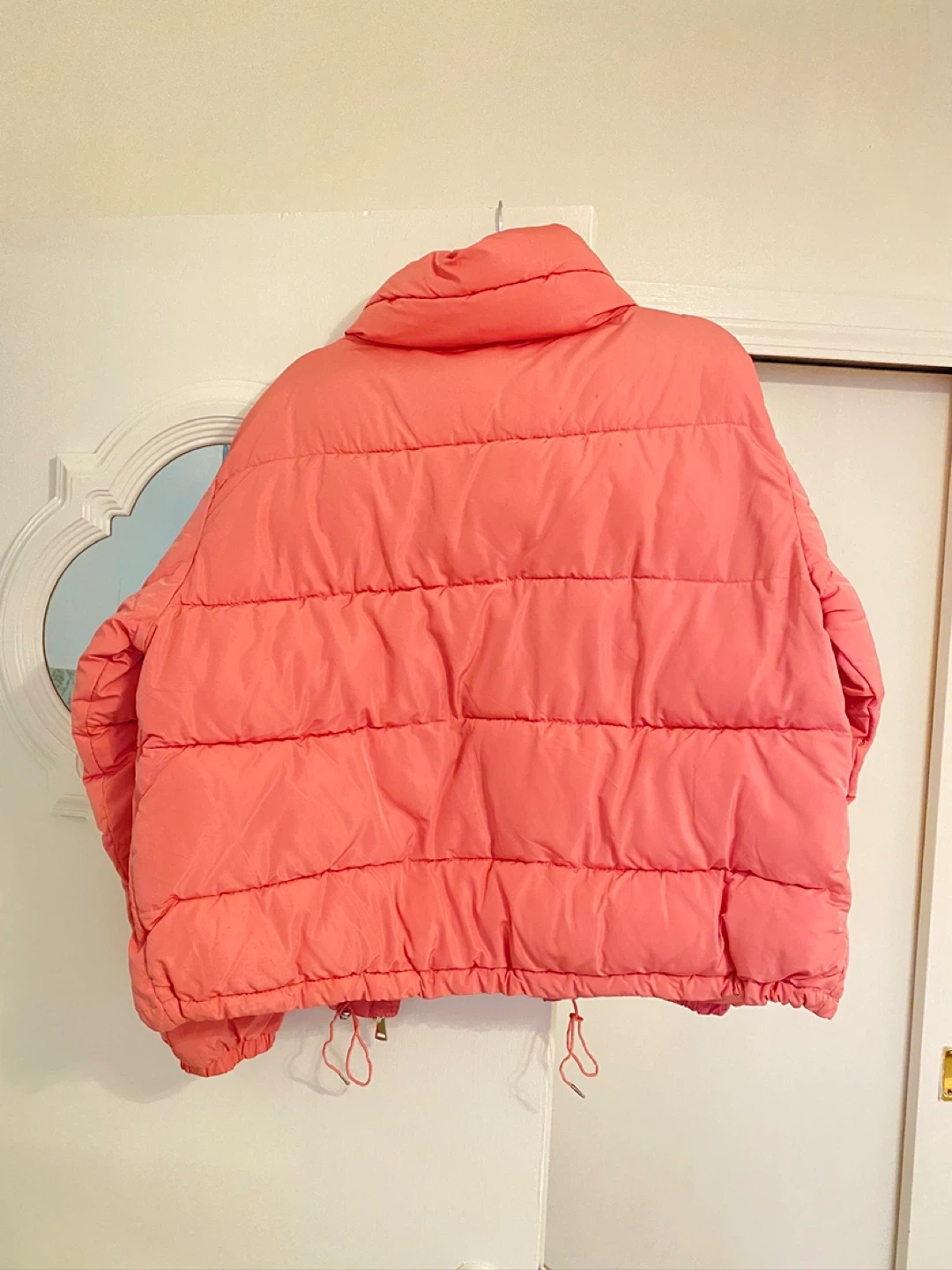 76Selling a cute soft warm pink puffer jacket! It's in great condition and perfect for staying warm on COLD CANADIAN WINTER days. The colour is a prettiest soft bubblegum pink, and the fabric is buttery soft with a satin silky lining that feels so smooth and soft. Very warm! Pick up in rosscarrock sw :) it is size large but I am 5’3 and 104 lbs and I usually wear an extra small but I love this as an oversized jacket on me. So if you like oversized and are small it’ll be the same on you as it is on my in the photos. If you want it more fitted and wear a medium or large this will fit you perfectly :)