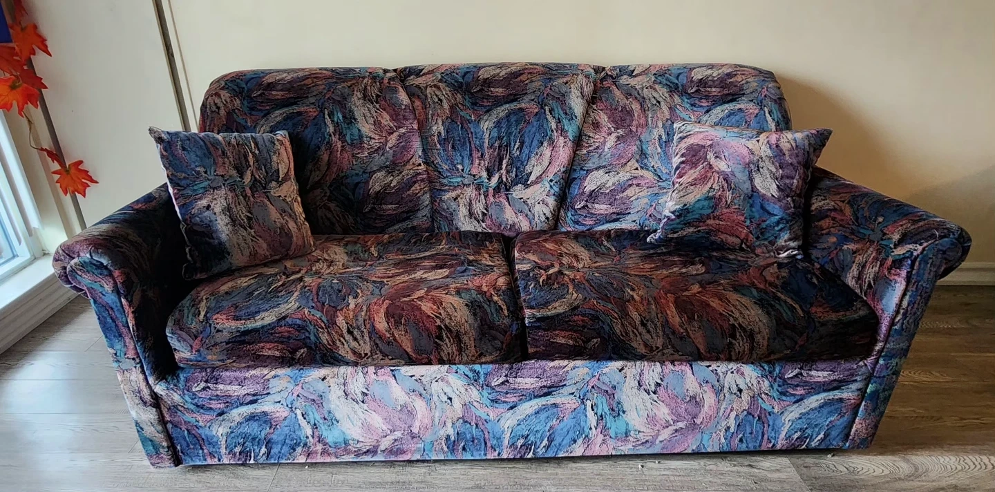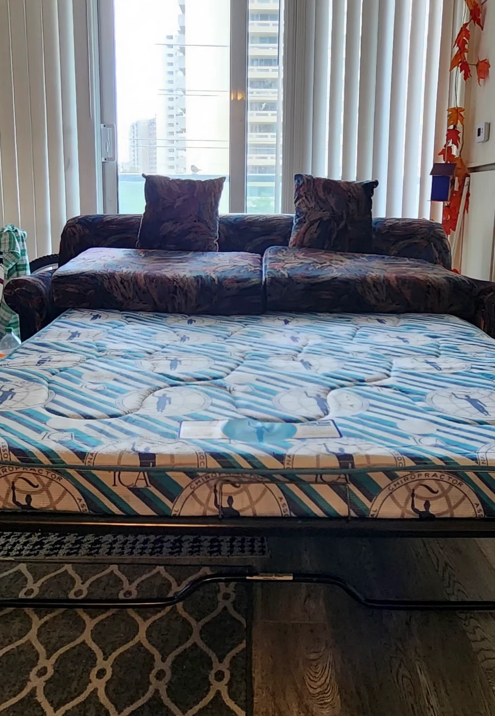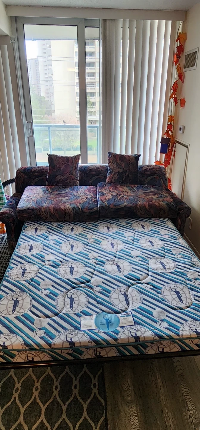 78Selling used Sofa bed in good condition. Perfect for small spaces, it easily converts from a comfortable sofa to a cozy bed. It comes with matching pillows and the pull-out mattress is in great shape.selling it because moving out. Smook free and pet free home. *** MovingOut sale *** *** Price Negotiable *** ^^^ Location - 1 Elm Drive West, Mississauga, L5B4M1.